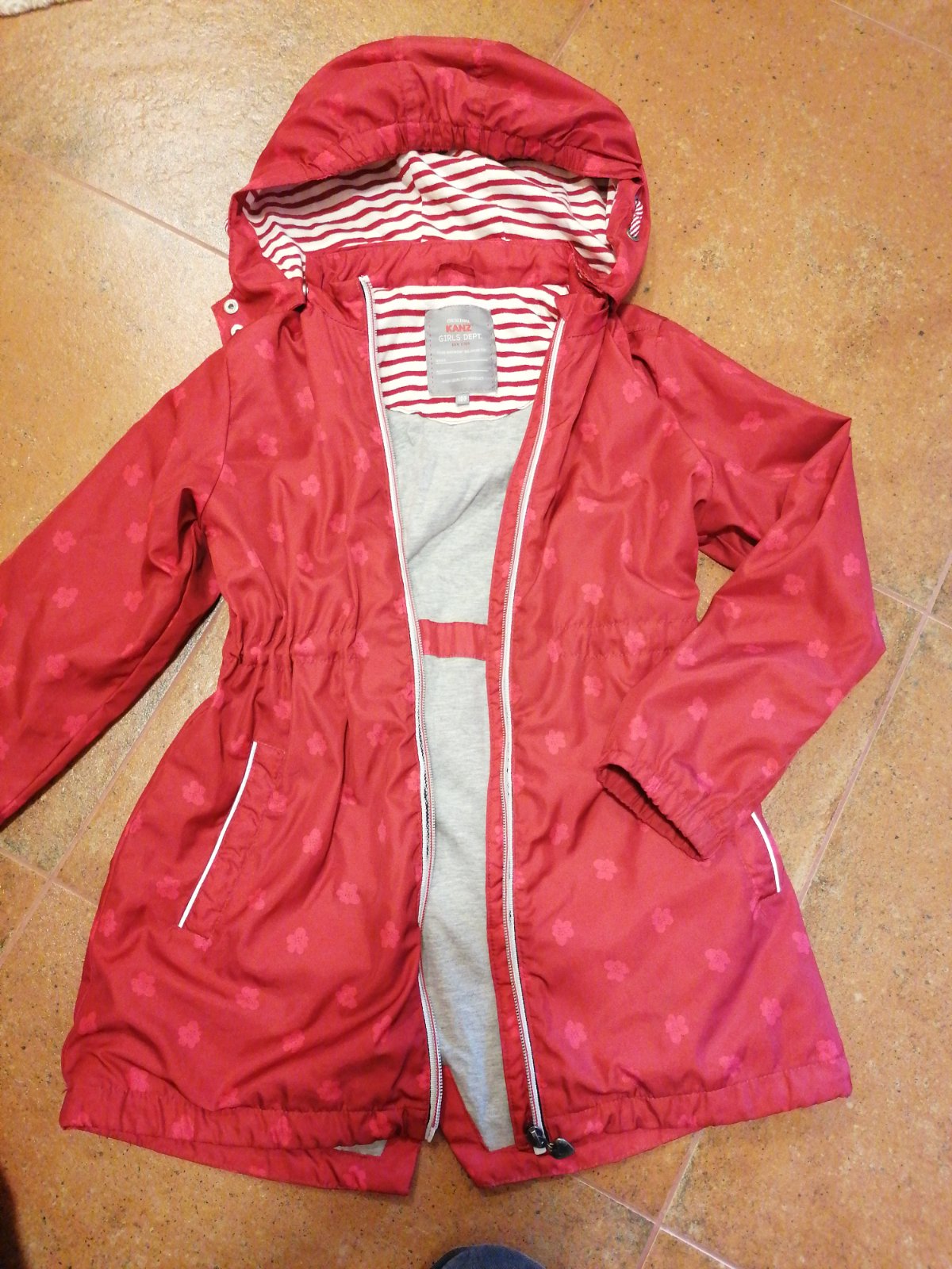 Reflex. prvky, bavlnená podšívka, top stav. Kapucňa odopinatelna. Sťahovanie v páse, krásny strih. Cena plus pošta