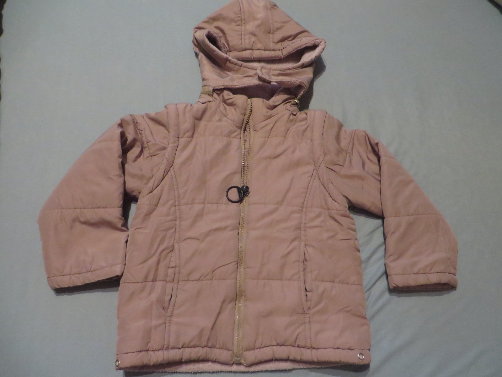 Predám túto nosenú, šikovnú prechodnú teplejšiu bundičku, 2v1. Po odopnutí rukávov je z nej vesta, takže ponosíte od jari do jesene, či miernej zimy :). Veľ. 104, zipsy sú v poriadku. Vnútro je fleesové.