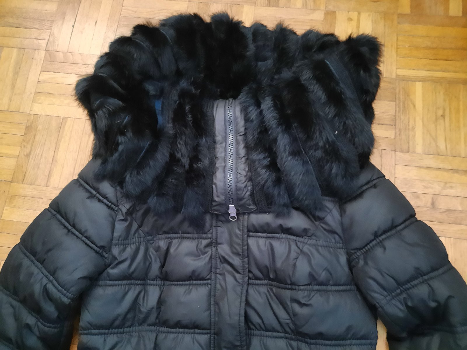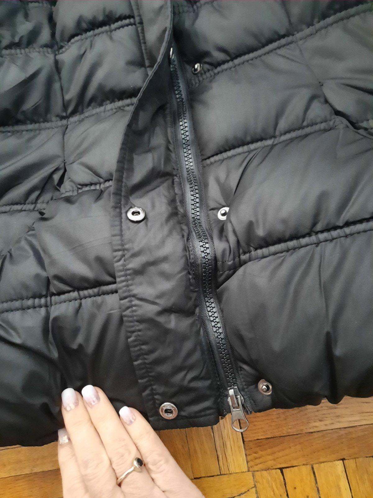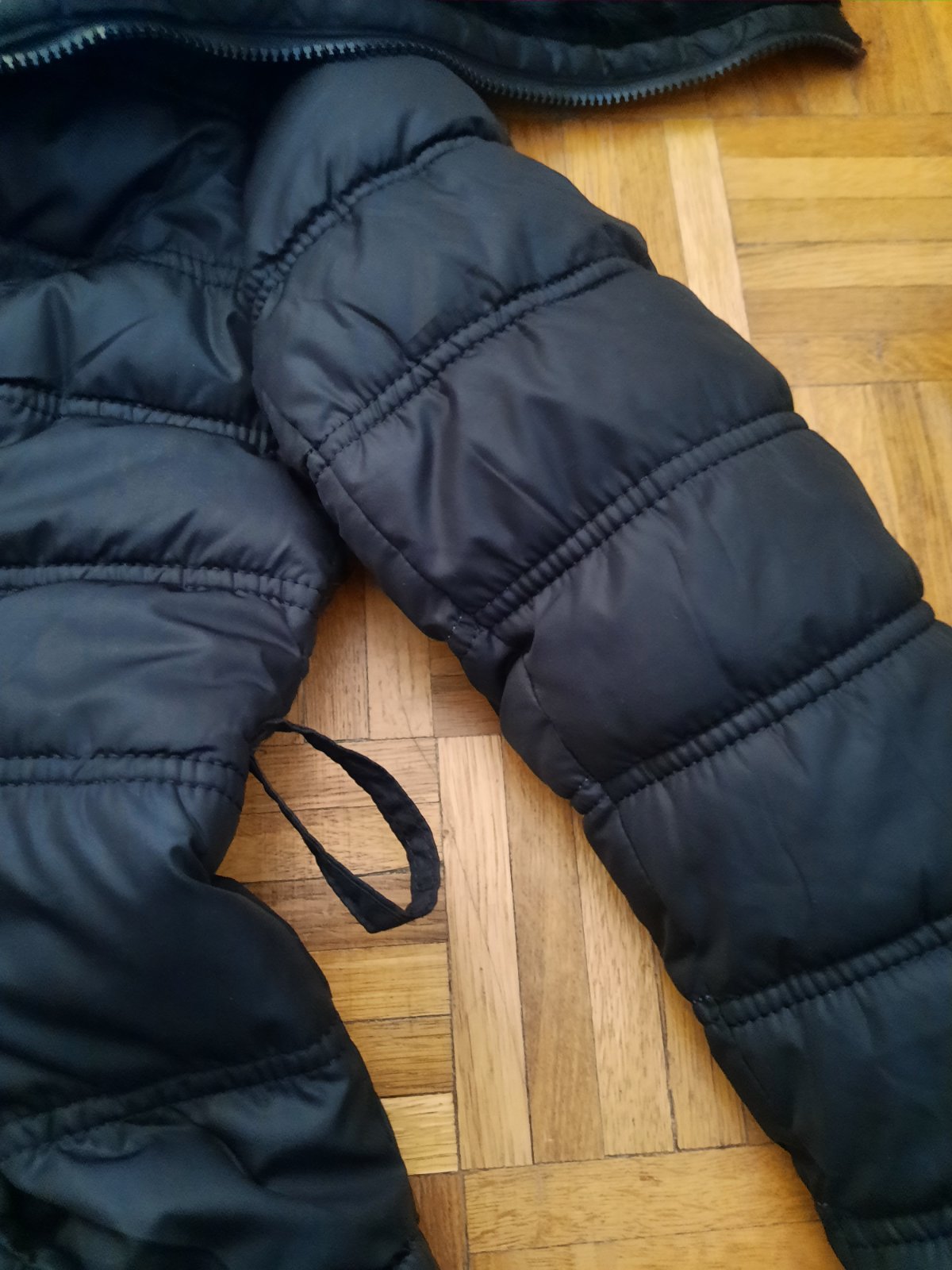 Krásna prešívaná bunda s veľkým golierom. Ten golier sa dá nosiť ako rolák, ale aj stiahnuť na ramená. Opasok nemám- dá sa v pohode nosiť aj bez neho, príp.s iným. Výborný stav. Vyzerá veľmi elegantne s tým golierom. Vačky sú vpredu. Zapínanie na zips+ nit. Veľkostne sedí na XS-S.