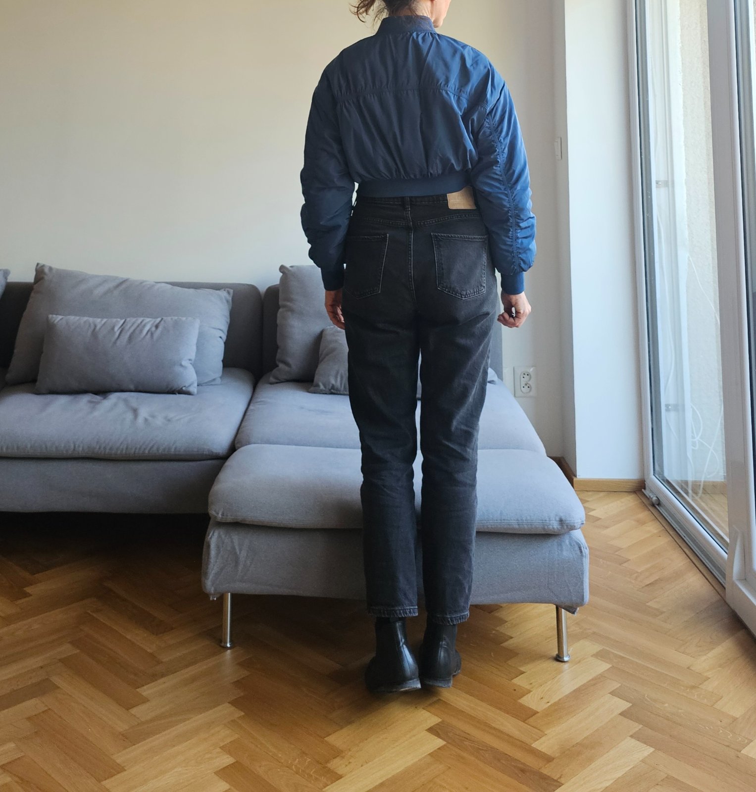 Krátka bunda bomber. Veľkosť uvedená S ale kľudne aj pre M je volnejsia.