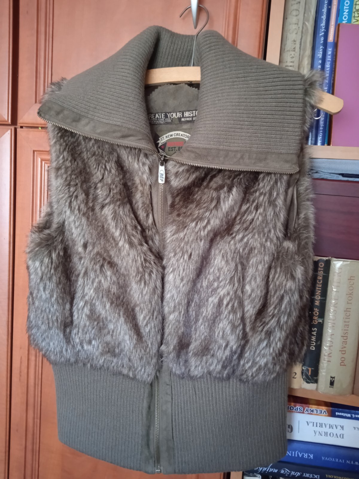 top stav, úžasná kozusinova vesta, dĺžka od ramien 67cm, podpazusie 55cm, material polyester, vnútro podsite , nepouzita bez poskodenia, PC bola vyssia