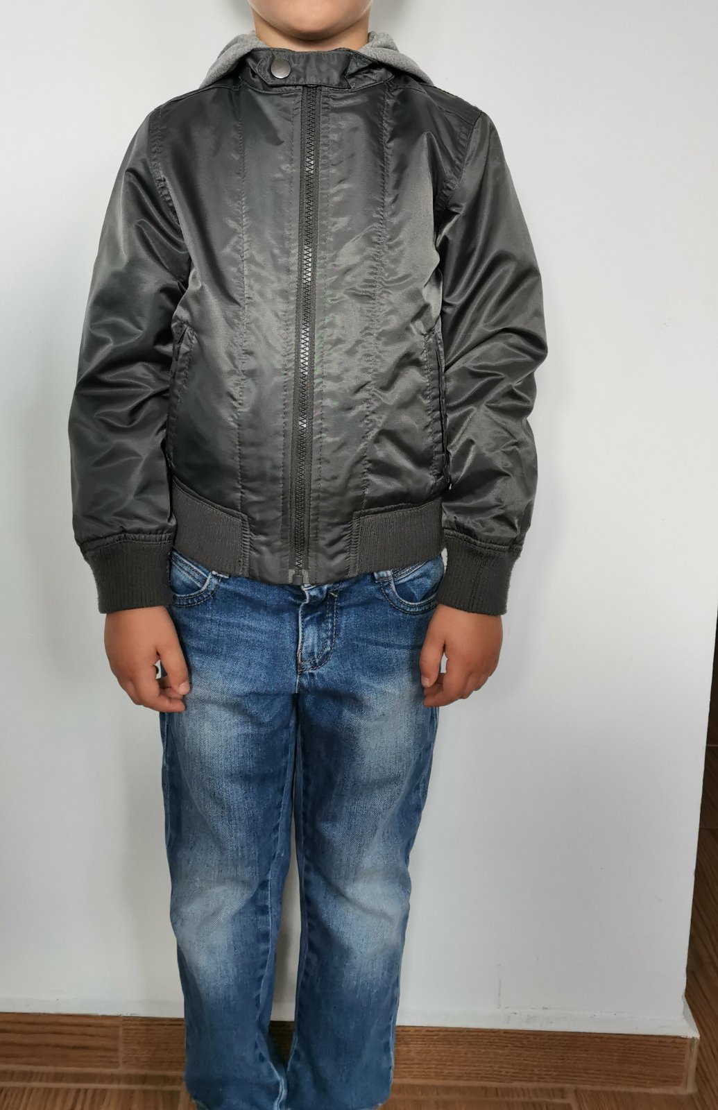 Predám prechodnú bundu do pása ukončenú patentom značky Neu look. Bundička má 2 zipsy - efekt mikinky pod bundou. Bez závad. Veľkosť 110. Cena 4€.