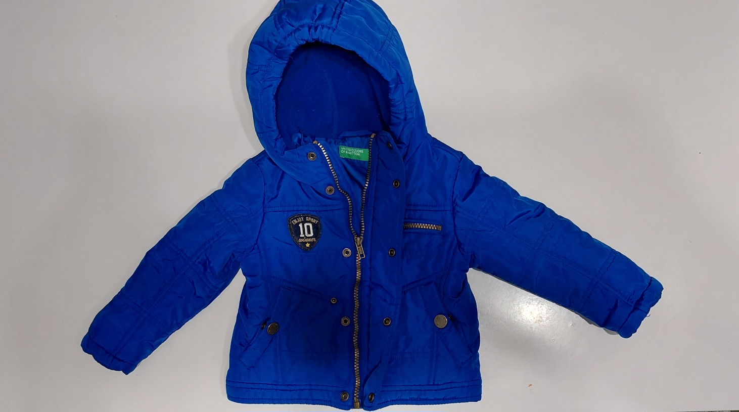 Prechodná vetrovka, nosili sme hlavne počas chladnejších dní v jeseni. V peknom zachovalom stave. Farba - parížska modrá, veľkosť uvadzaná 2 roky.
