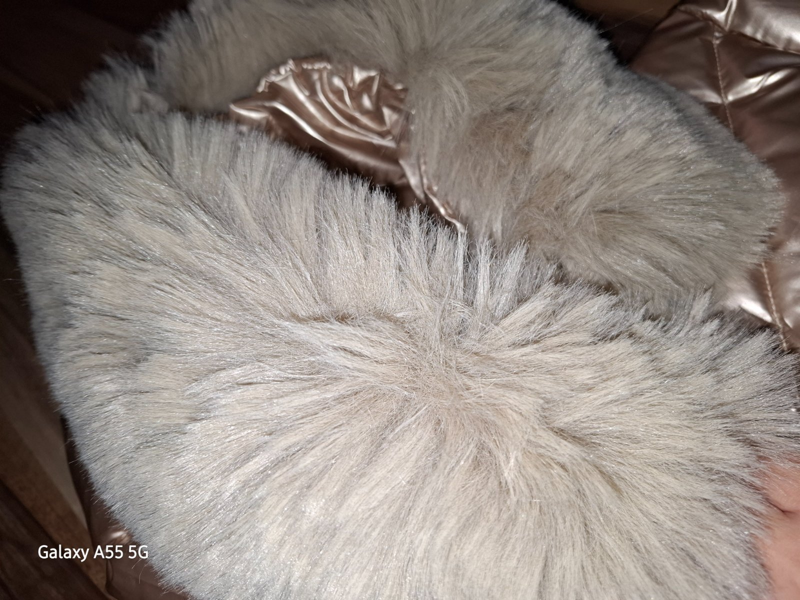 Nádherná zlatá bunda,má výplň vo vnútri. Top stav.. Ako nová .Veľkosť píšu S. .kožušina umelá.Cena 35 eur+postovne .možná dohoda na cene obvod prs 98.dĺžka od ramena 62 cm.