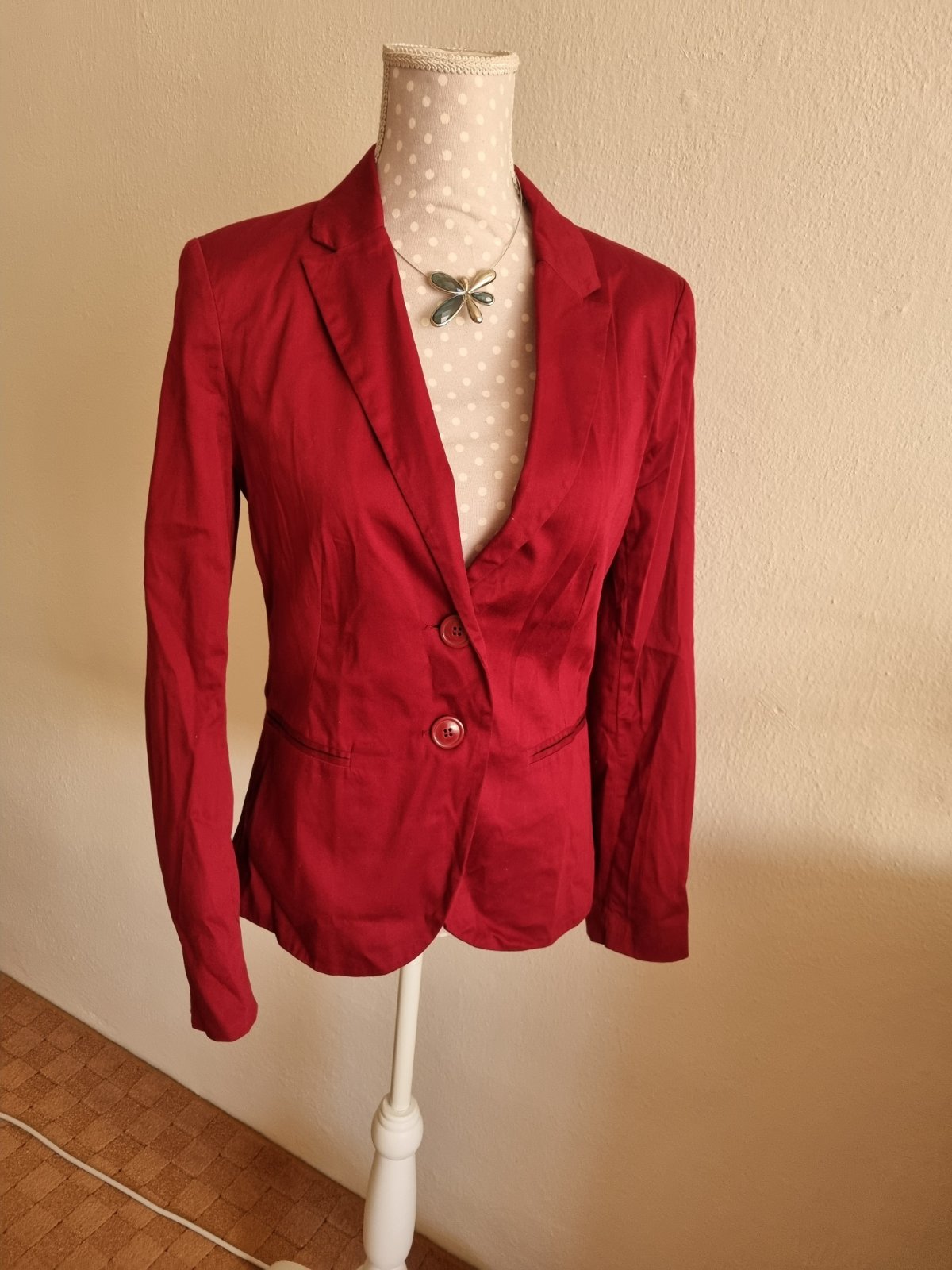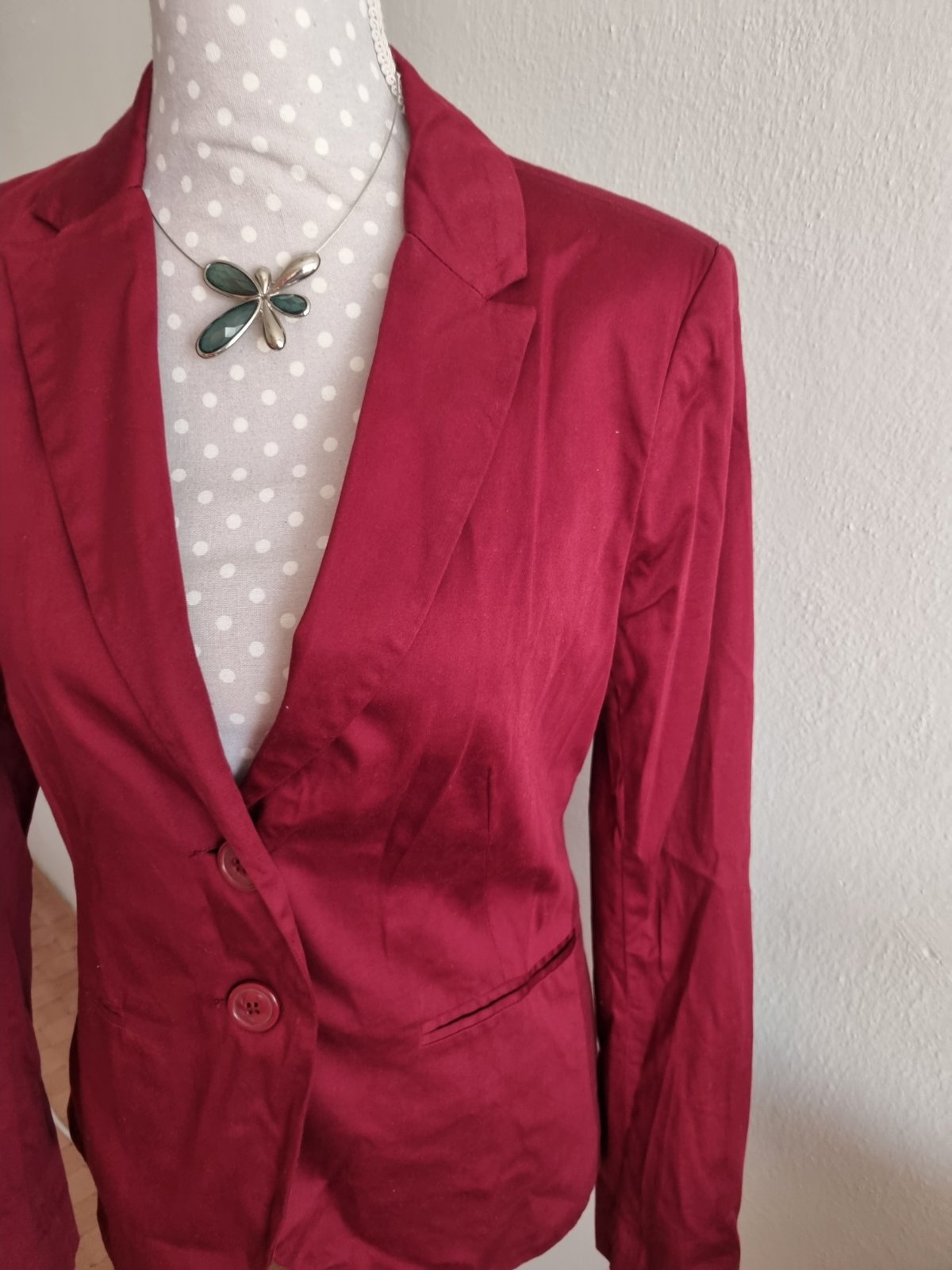 tmavobordové sako Stradivarius ( tmavšie ako na foto ) , píše M, sedí na 38, mierne elastické , nenosené len skladované, trochu je pokrčené, podšité, dlžka od ramena 63, prsia 47x2, pás 40x2, rukáv od krku 74...