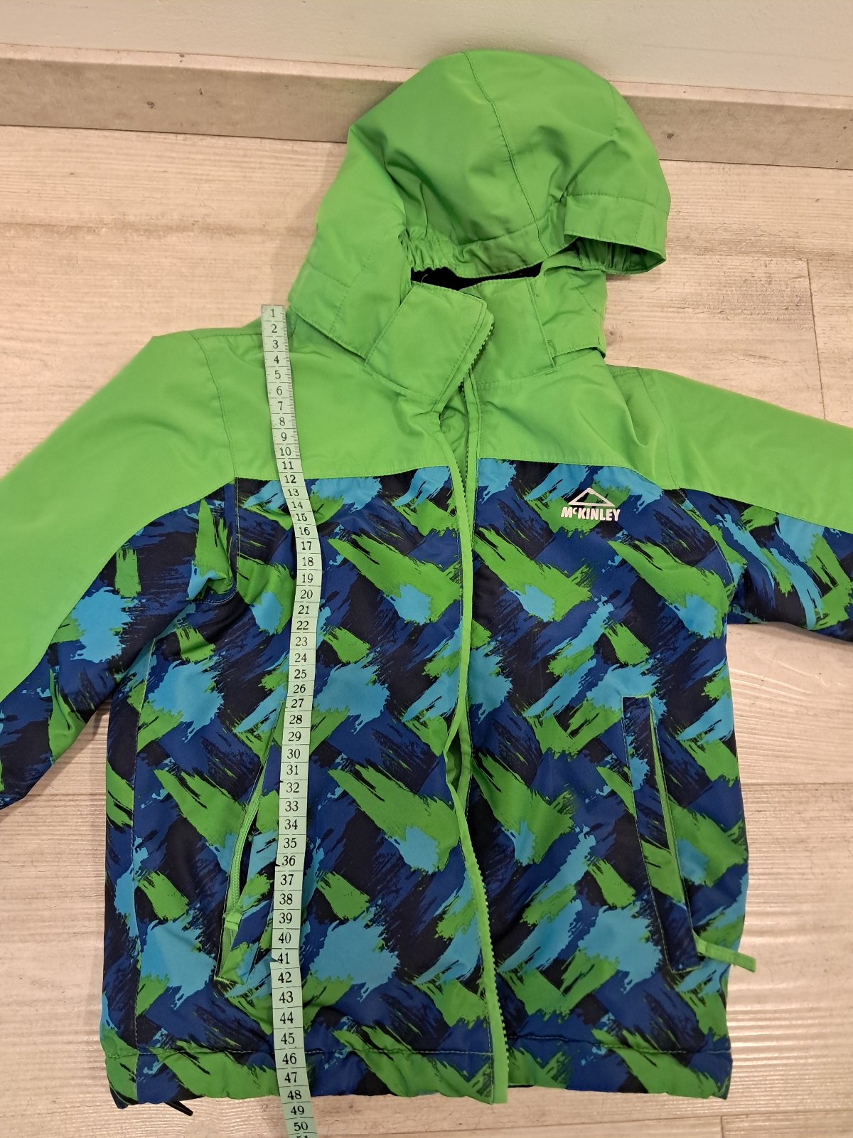 Predám zelenú lyžiarsku bundu, veľ. 116, pre 5-6 rokov, zn. McKINLEY, s odnímateľnou kapucou, nastaviteľnými rukávmi, nepremokavá s funkciou Aquamax, s reflexným prvkom vzadu. Veľmi pekný nosený stav.