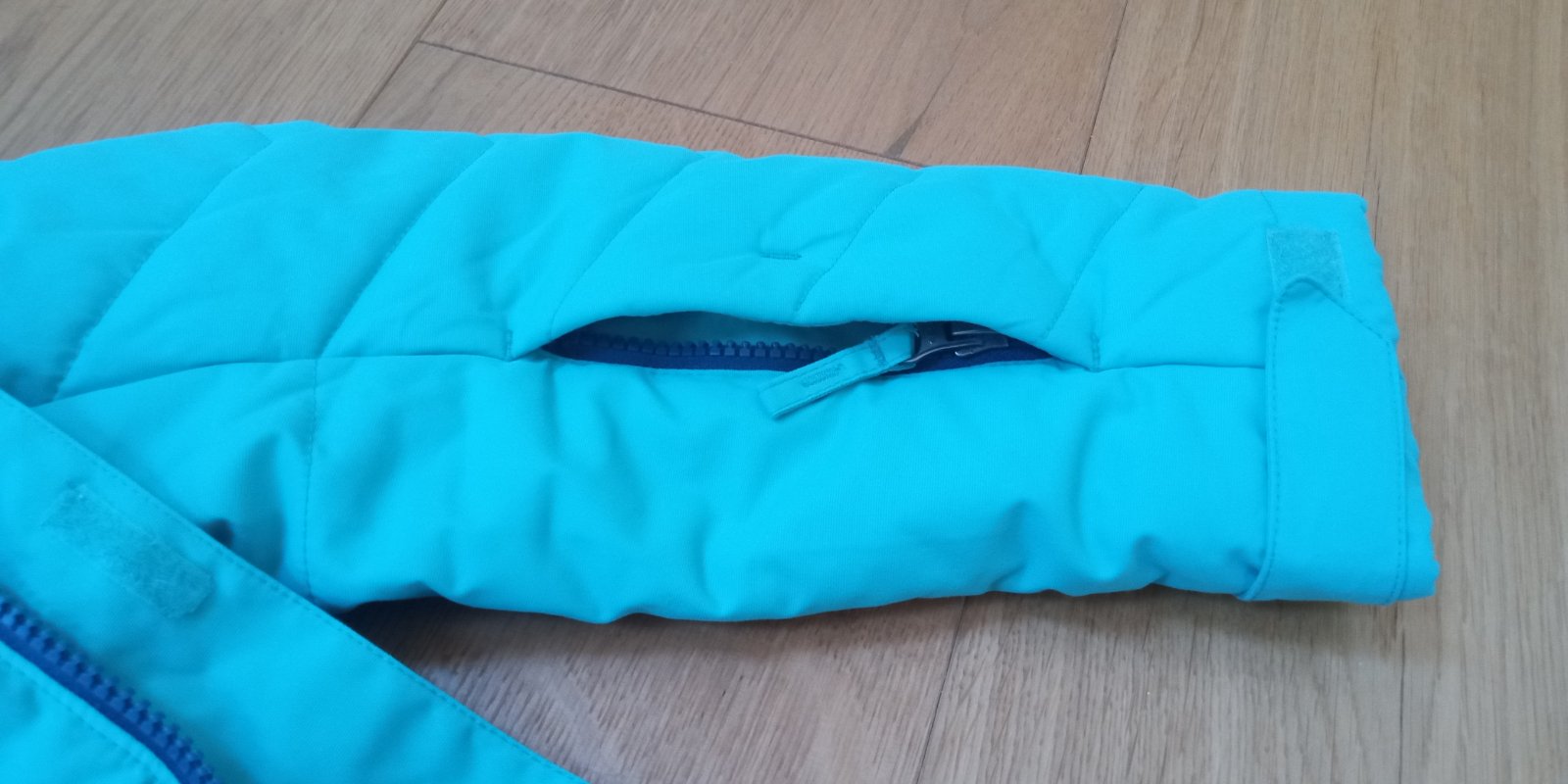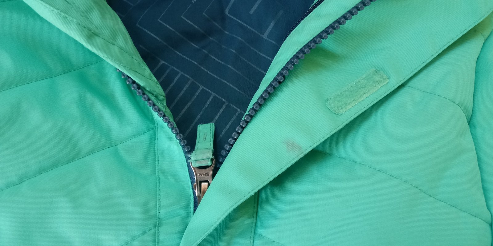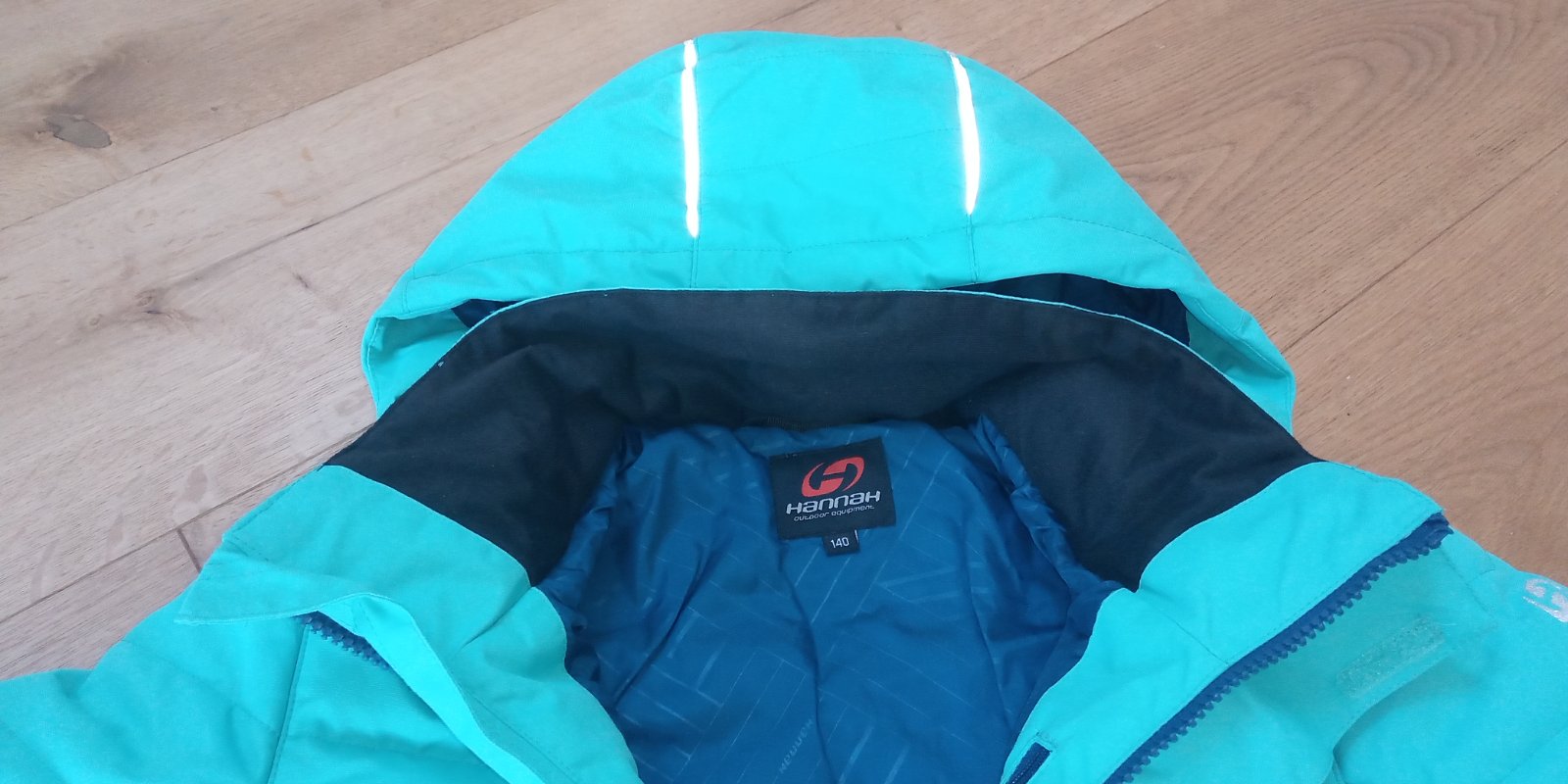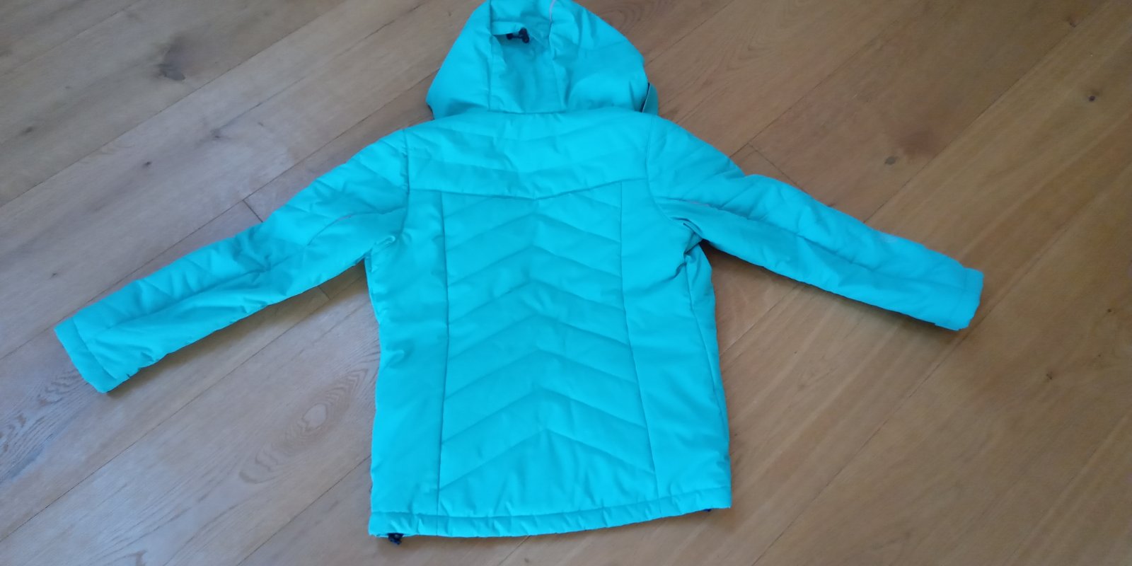 Super stav, lyžiarska bunda so všetkým potrebným vybavením. Jediná vada, malý flacik zvnútra bundy (vid posledná foto) a ešte menší kúsok z vonkajšej strany. Možno pôjde aj vyprať, lebo dcéra po vyprani mala bundu ešte raz oblečenú, možno uspinila vtedy.