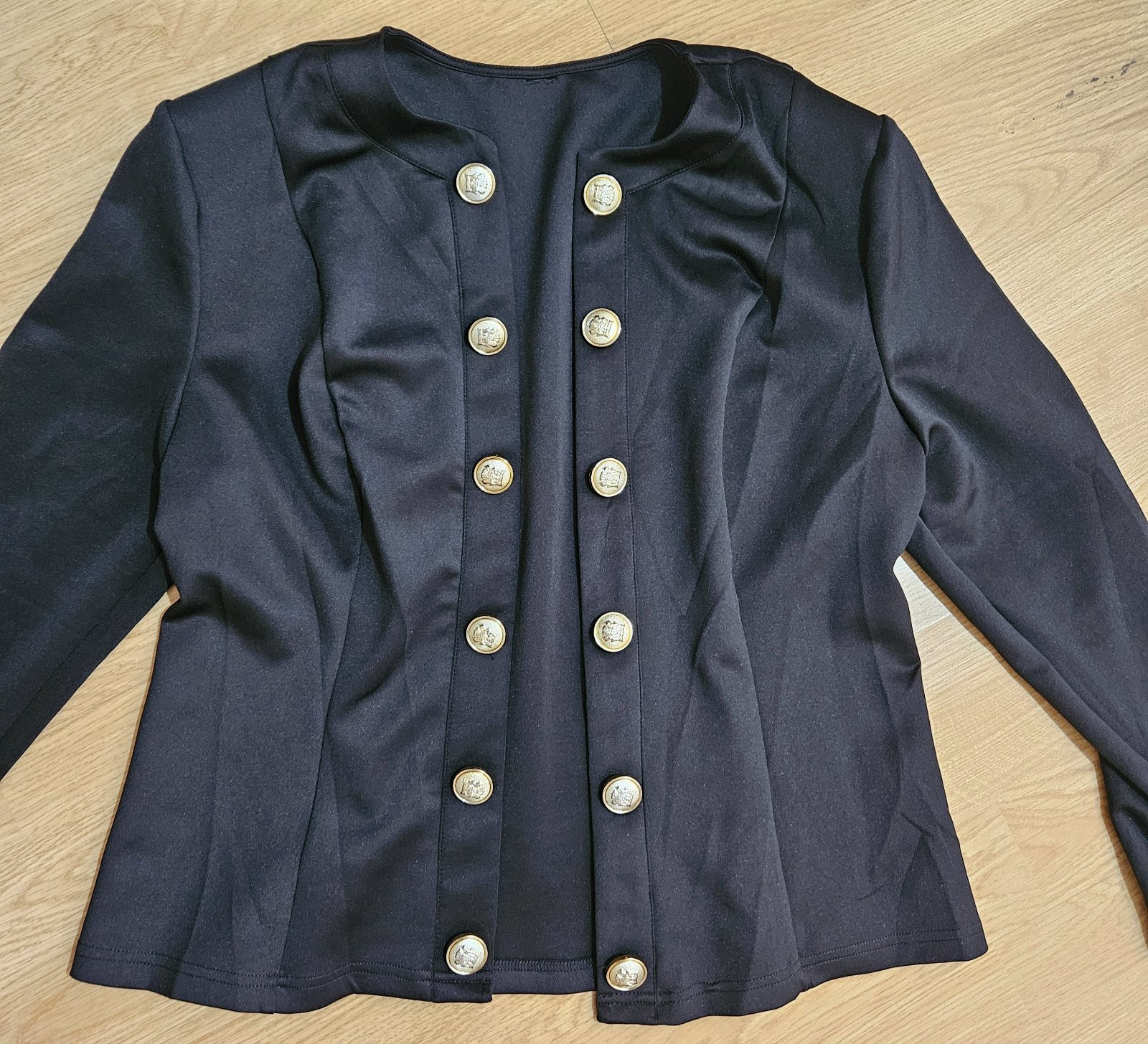 Perfekt sako bez zapínania s ozdob.zlatými gombíkmi elastické..veľ.44..top stav.