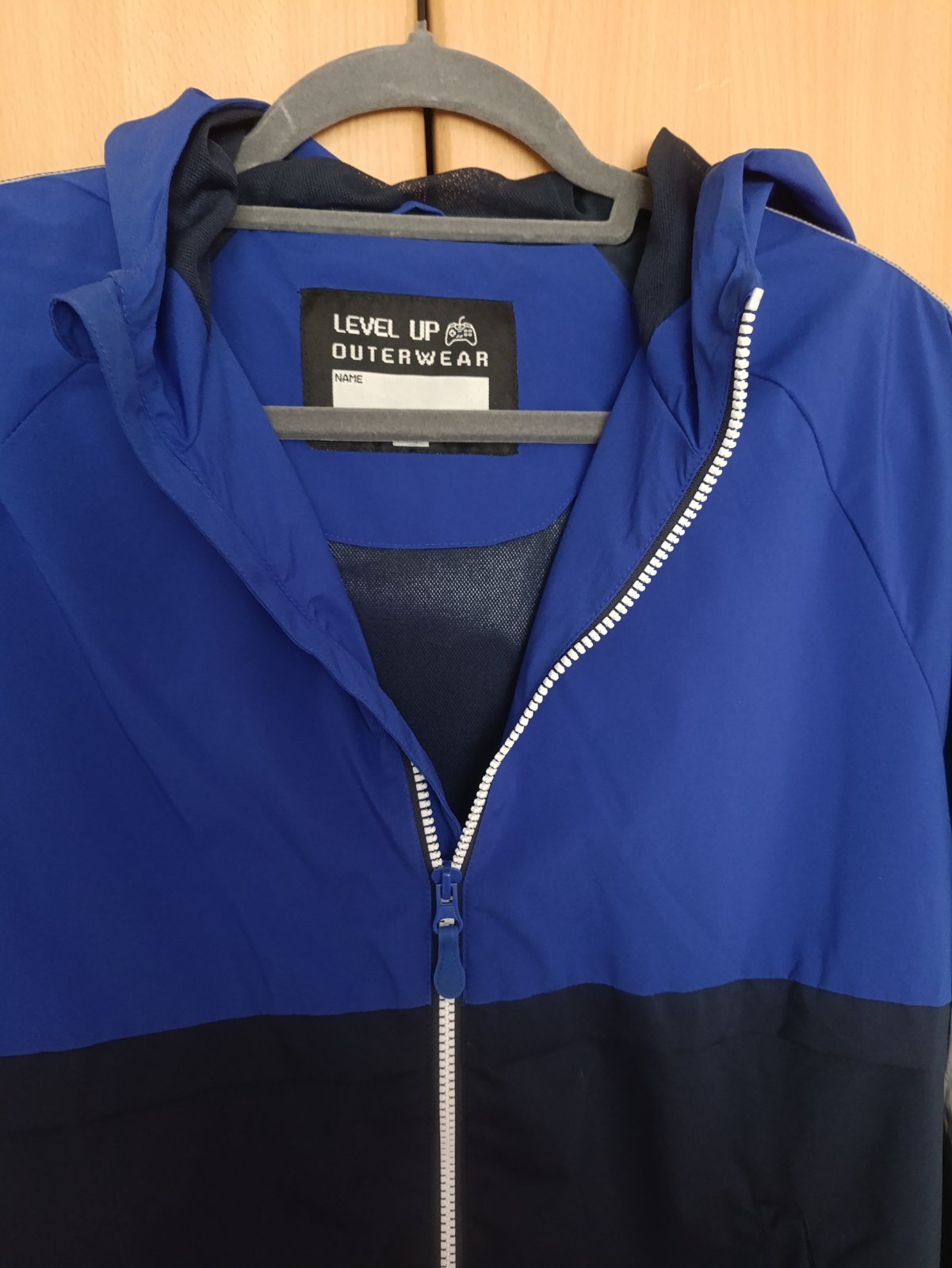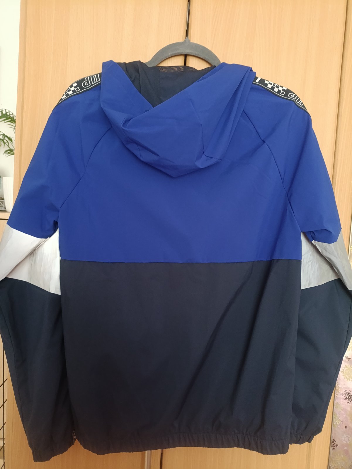 Šuštiaková bunda s kapucňou znacky H&M. Dole všitá guma. Kupovaná nová a nosená veľmi málo. Veľmi dobrý stav. Farba je tmavo modrá ako na prvej foto. Velkost pisana 170 na 14 rokov. Podla mna tak...