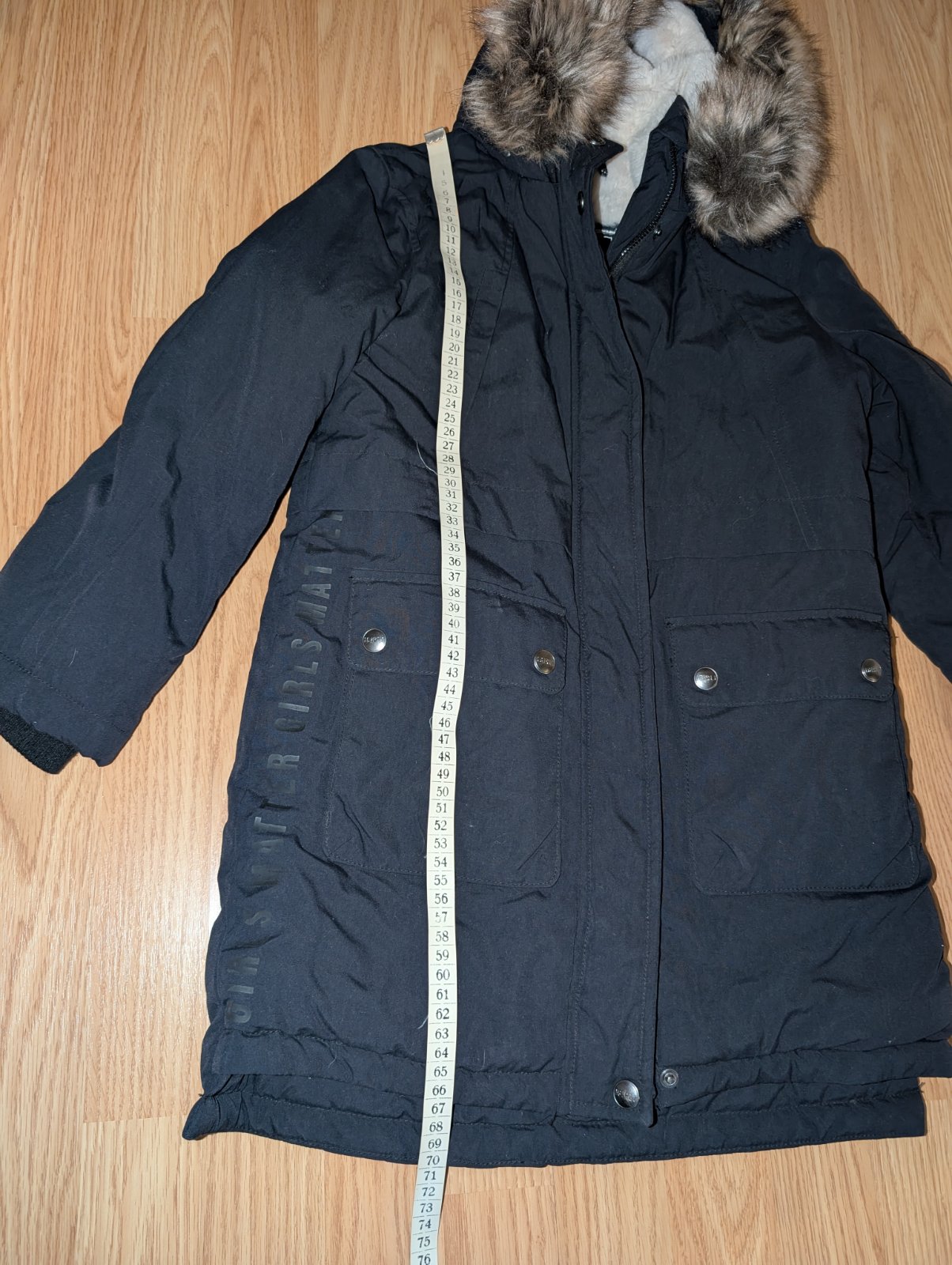 Jednu sezónu nosená veľmi teplá zimná bunda, celá podšitá kožušinou. Predĺžený strih, kapucňa, bez poškodenia. Podľa potreby premeriam. Tmavomodrá až čierna farba. Top stav. Neskutočne sedí.