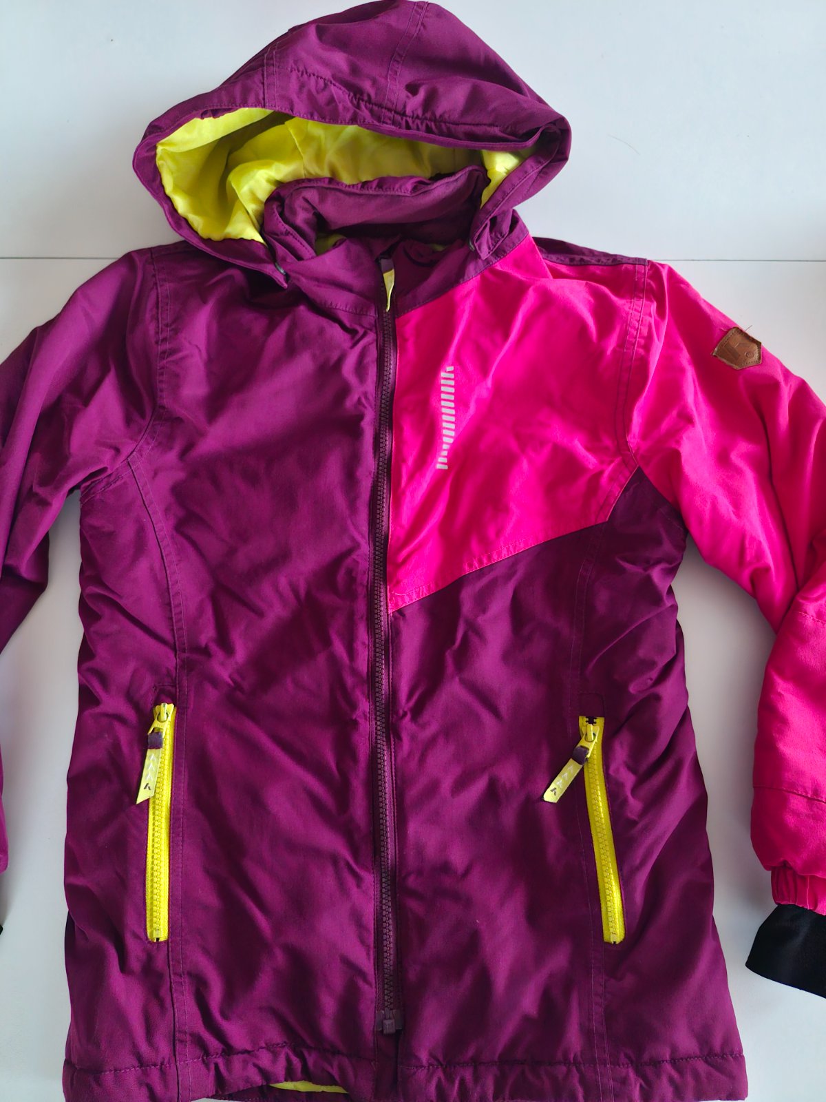 Top stav, kupovana nova (vid. posledná foto), asi 3x daná, mali sme toho vela. Kapucña aj kozusinka sa dá odopnúť. Veľkosť na štítku 158, dcére sedela pri 152 velkosti, pas sa da upravit cvokmi, vi...