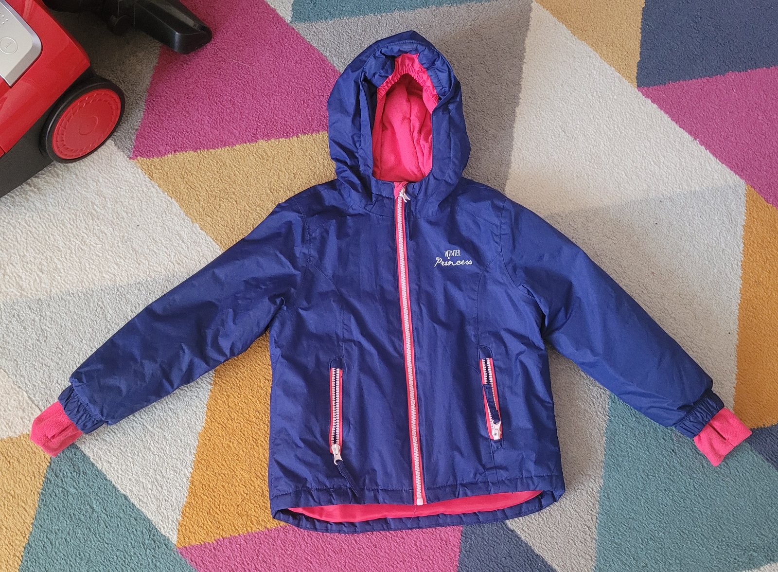 Pár krát oblečená dievčenská zimná bunda, veľkosť 110/116, značka Crivit
