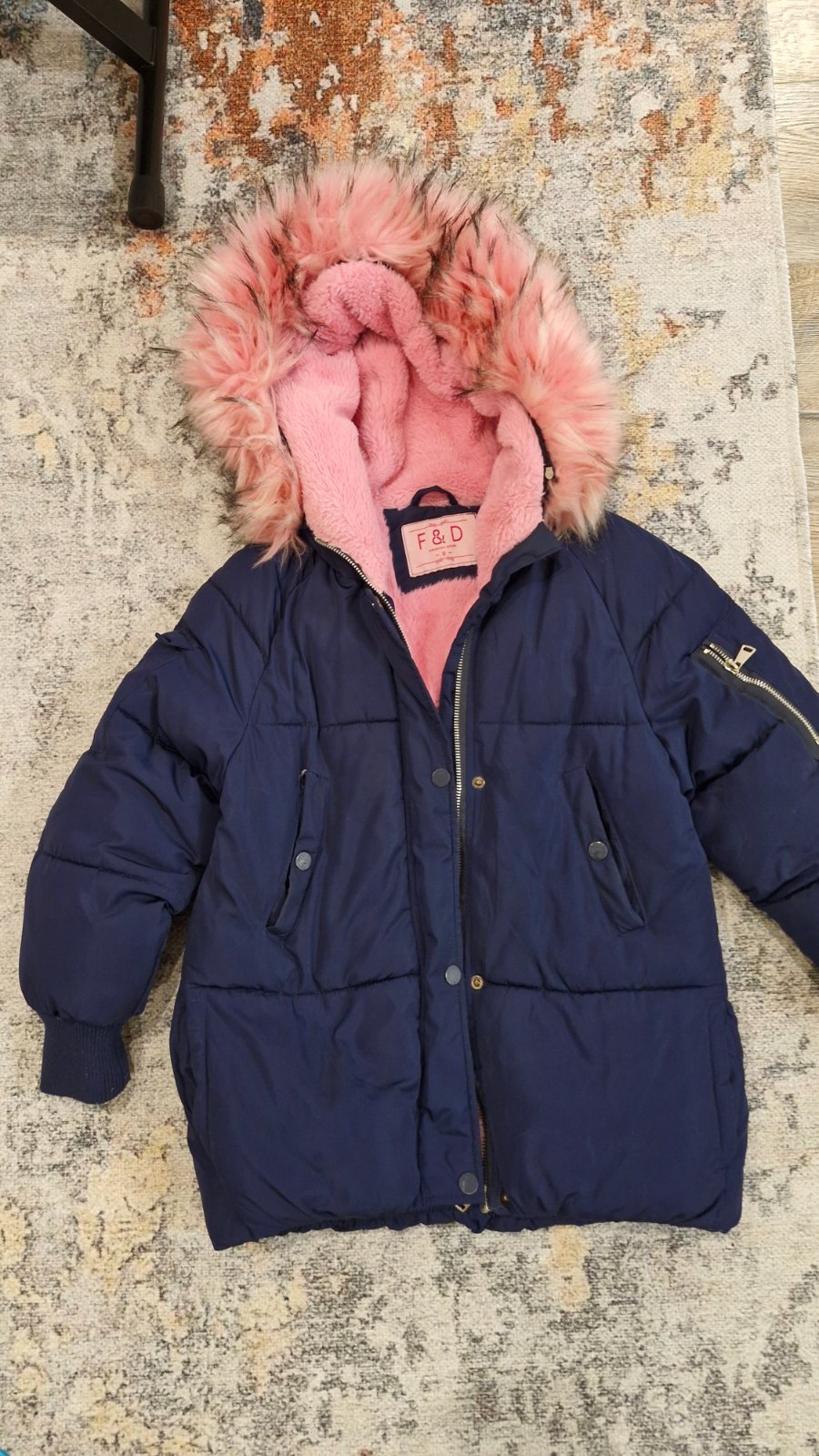 Zimna vetrovka, velmi tepla, zateplena kožušinou, nosena, stav velmi dobry. Velkost pisu 8, tipujem tak 134, treba pomerat. Rozmery nafotene