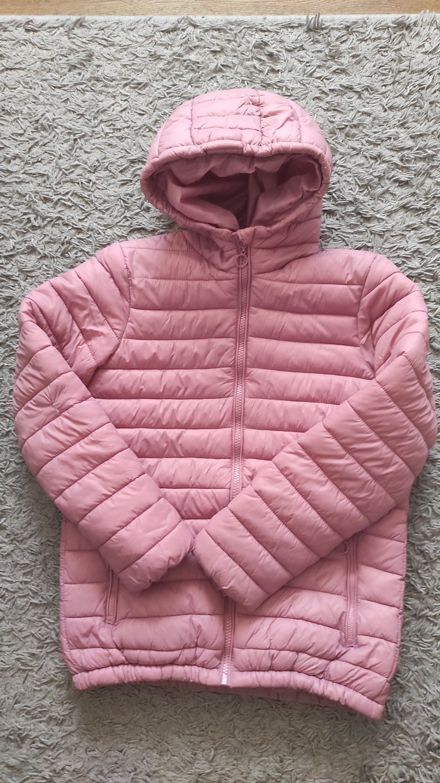 Nosená,v dobrom stave,farba pudrová ružová,na rukáve zozadu ako je lakeť dierka malá,zašitá,dcérka nosila aj tak neprekažalo to,cena zohľadnená,cena 9+pošta