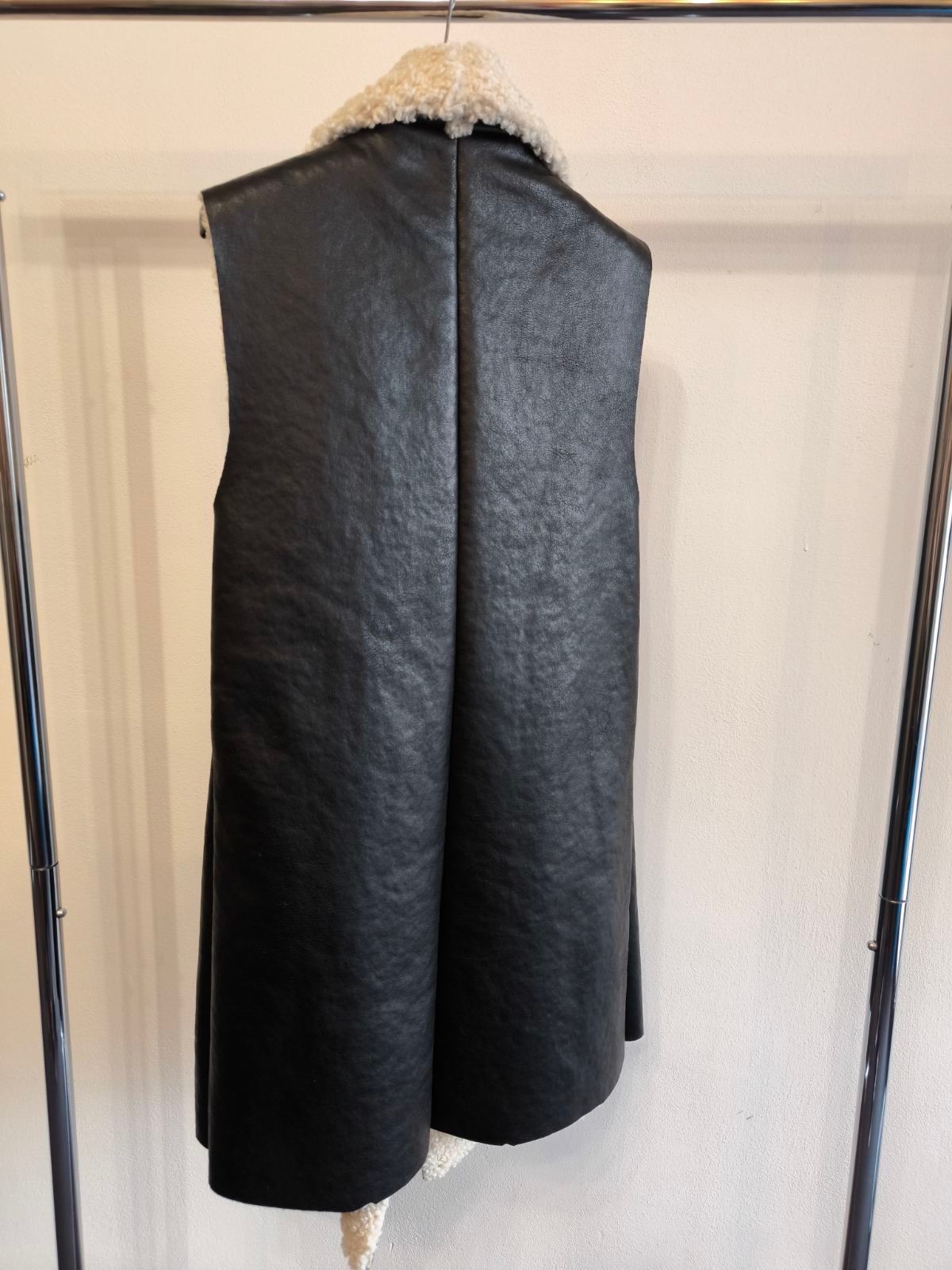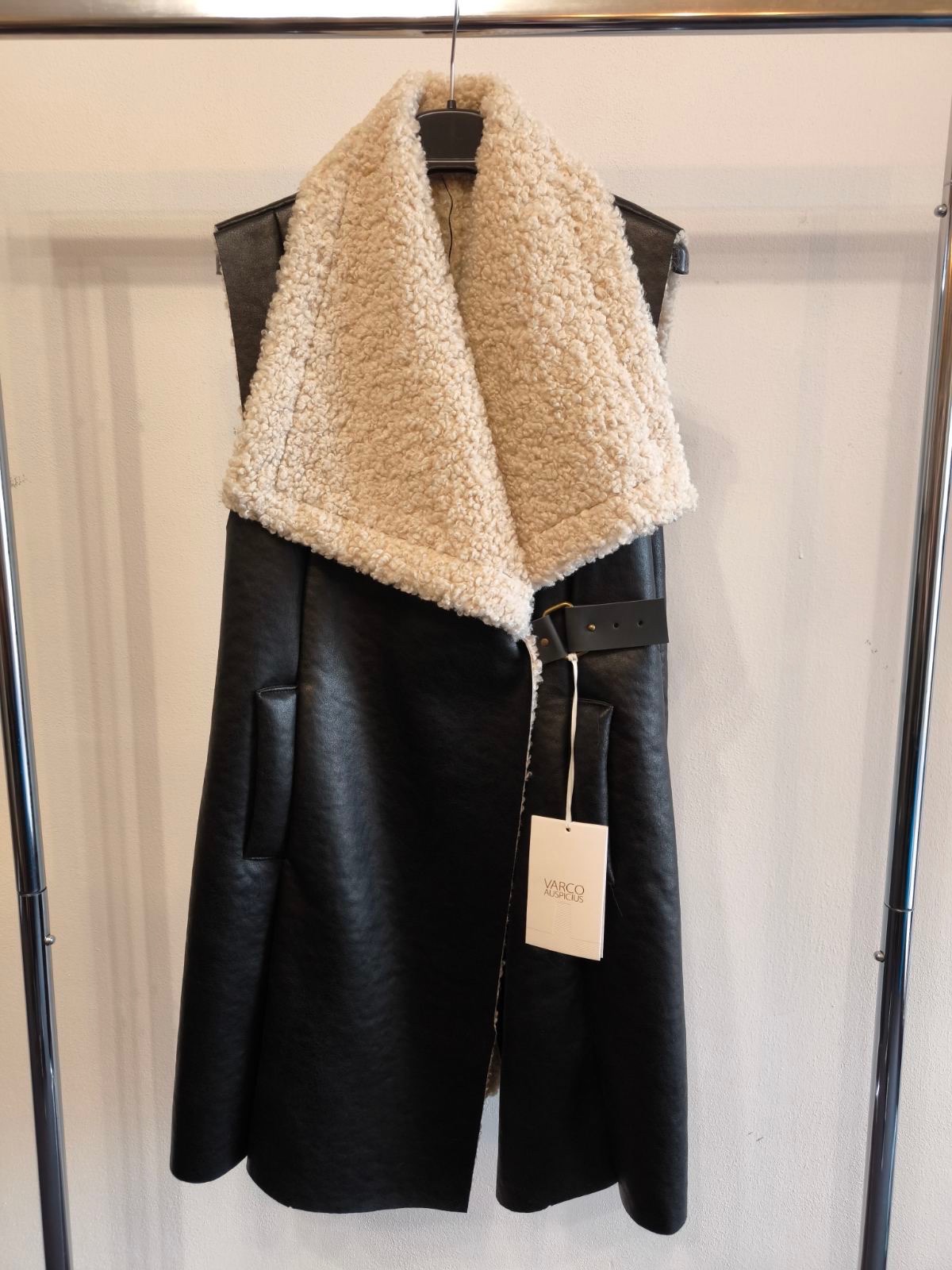 Chlpatá kožušinová vesta z umelej kožušiny.
