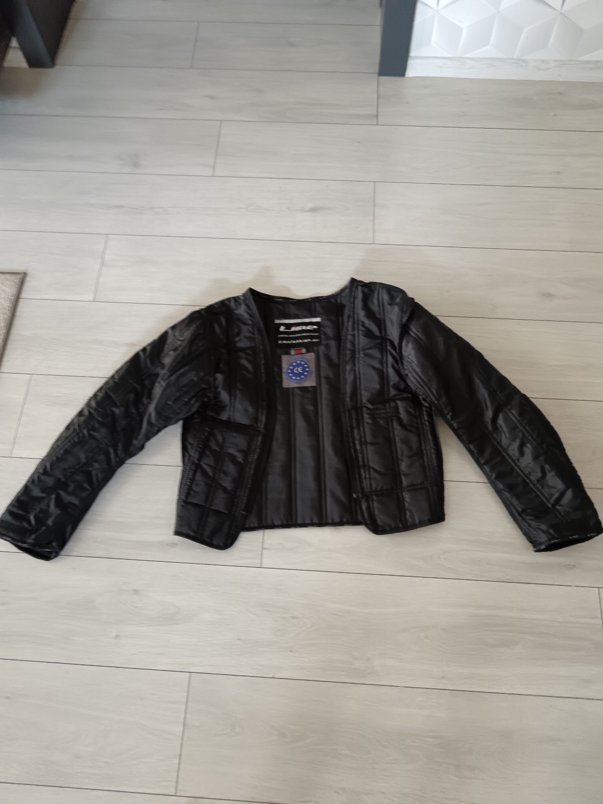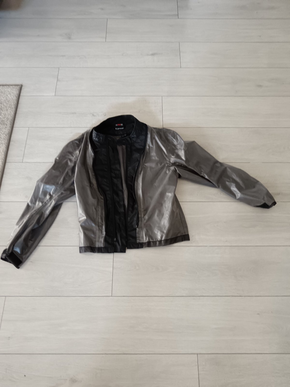 Luxusná prechodná bunda čiernej farby, zapínanie na zips, vrecká na zips, materiál šírka v podpazuší 59x2 cm, pás 58x2 cm, spodok 55x2 cm, dl. 67 cm, rukáv od goliera 80 cm z toho rameno 15 cm, v...