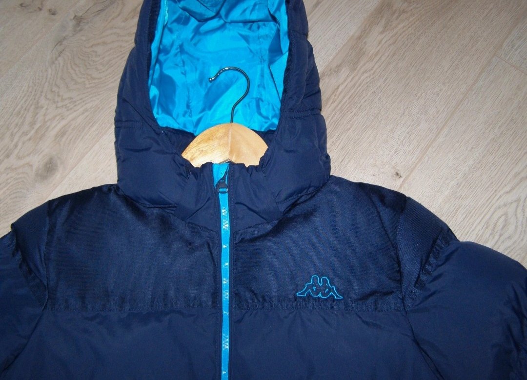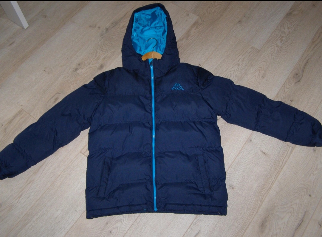 Zimná značková chlapčenská bunda zn. Kappa veľ.152, nepremokavá, odopínateľná kapucňa, kvalitný zips, veľmi pekná kombinácia farieb,nosená iba 1 sezónu aj to na striedačku s inou bundou, cena 35€