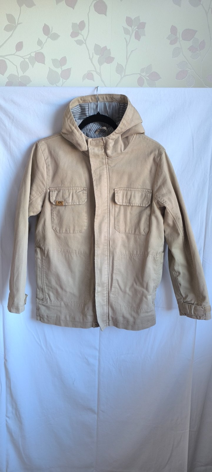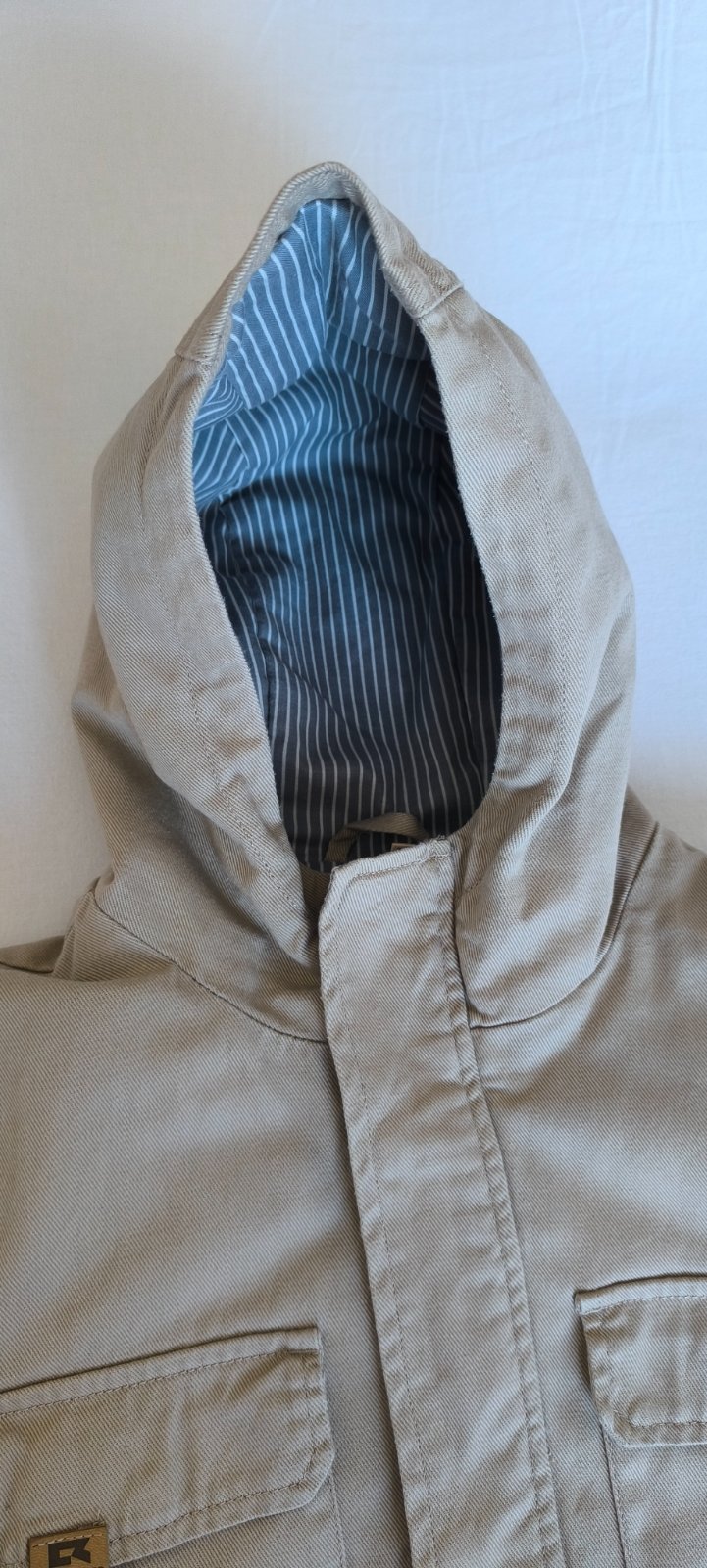 Iba opratá bunda, syn ju nechce nosiť 🤦🏻♀️ Je z mäkkej rifľoviny, podšitá sivo-bielou pásikavou látkou. Rozmery cez prsia 2x51cm, rukáv 57cm, dĺžka 65cm.