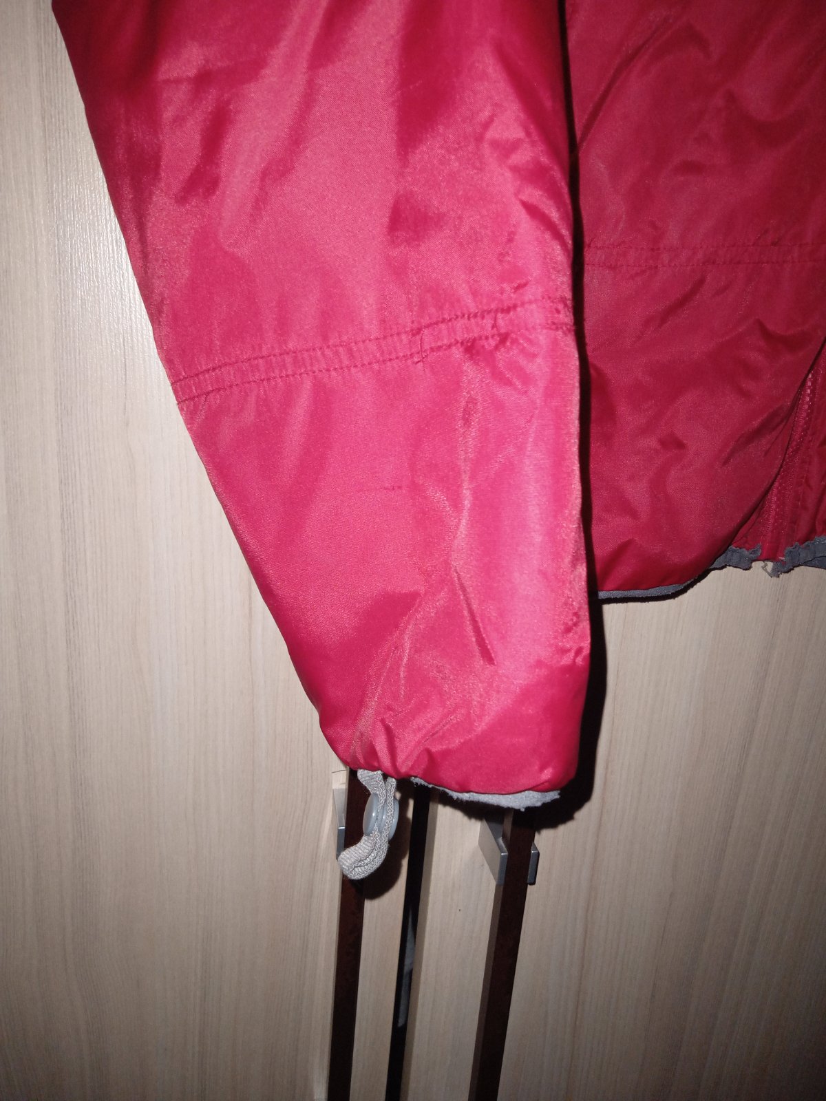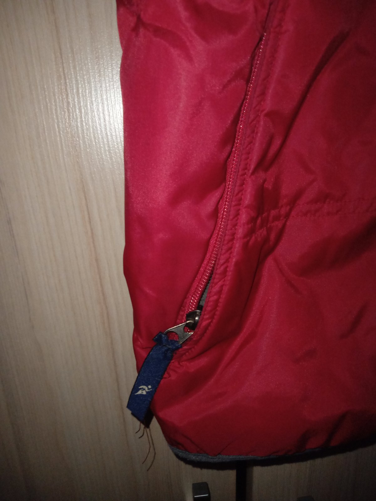 krasna, sportova bunda, vynikajuci stav, kapucna sa da skryt, neda sa odopnut.