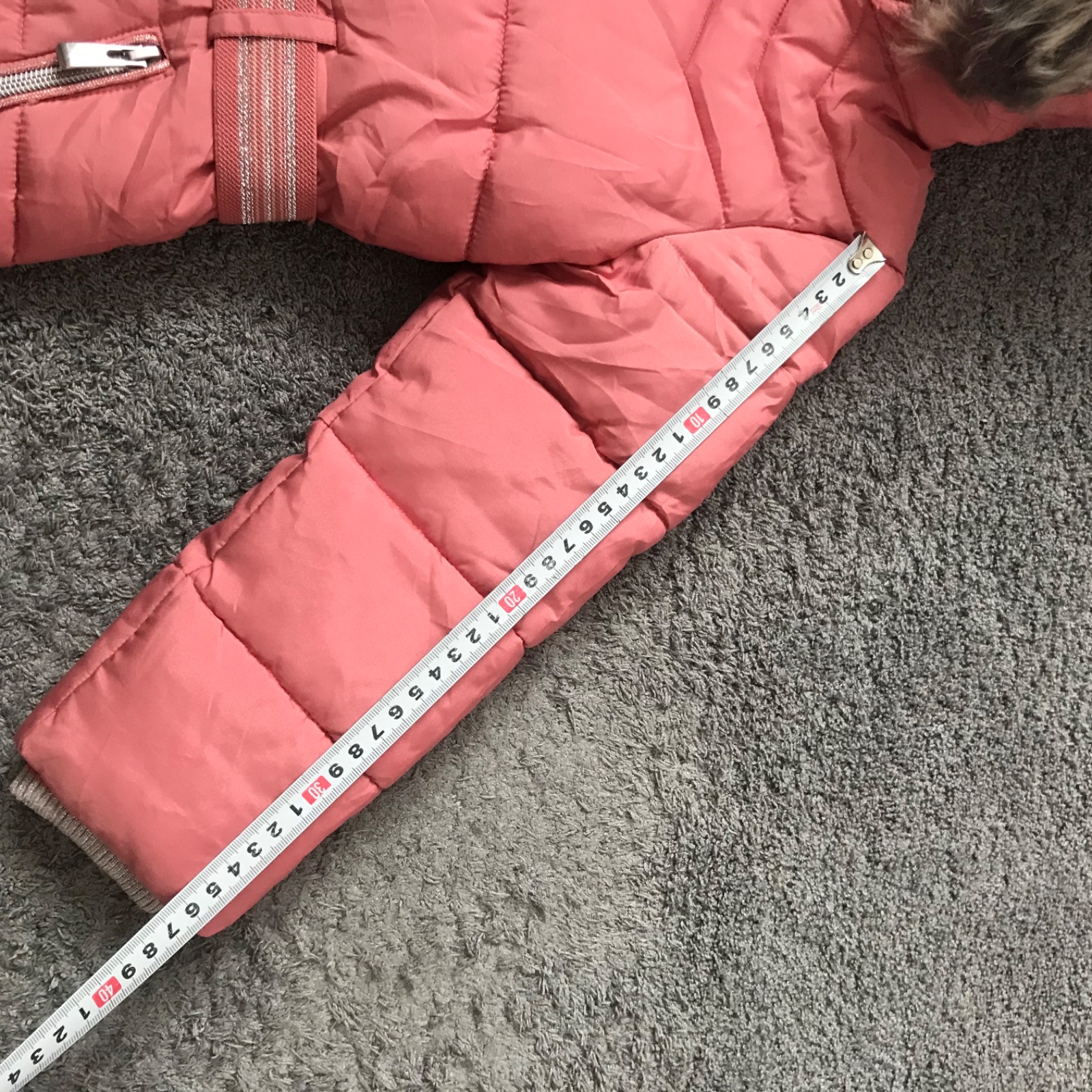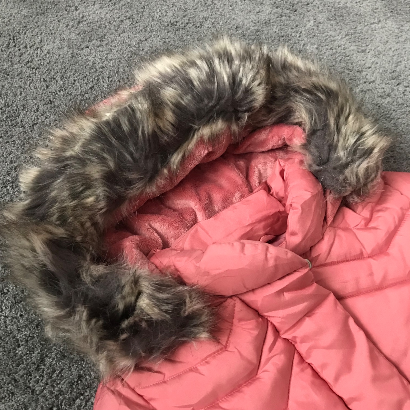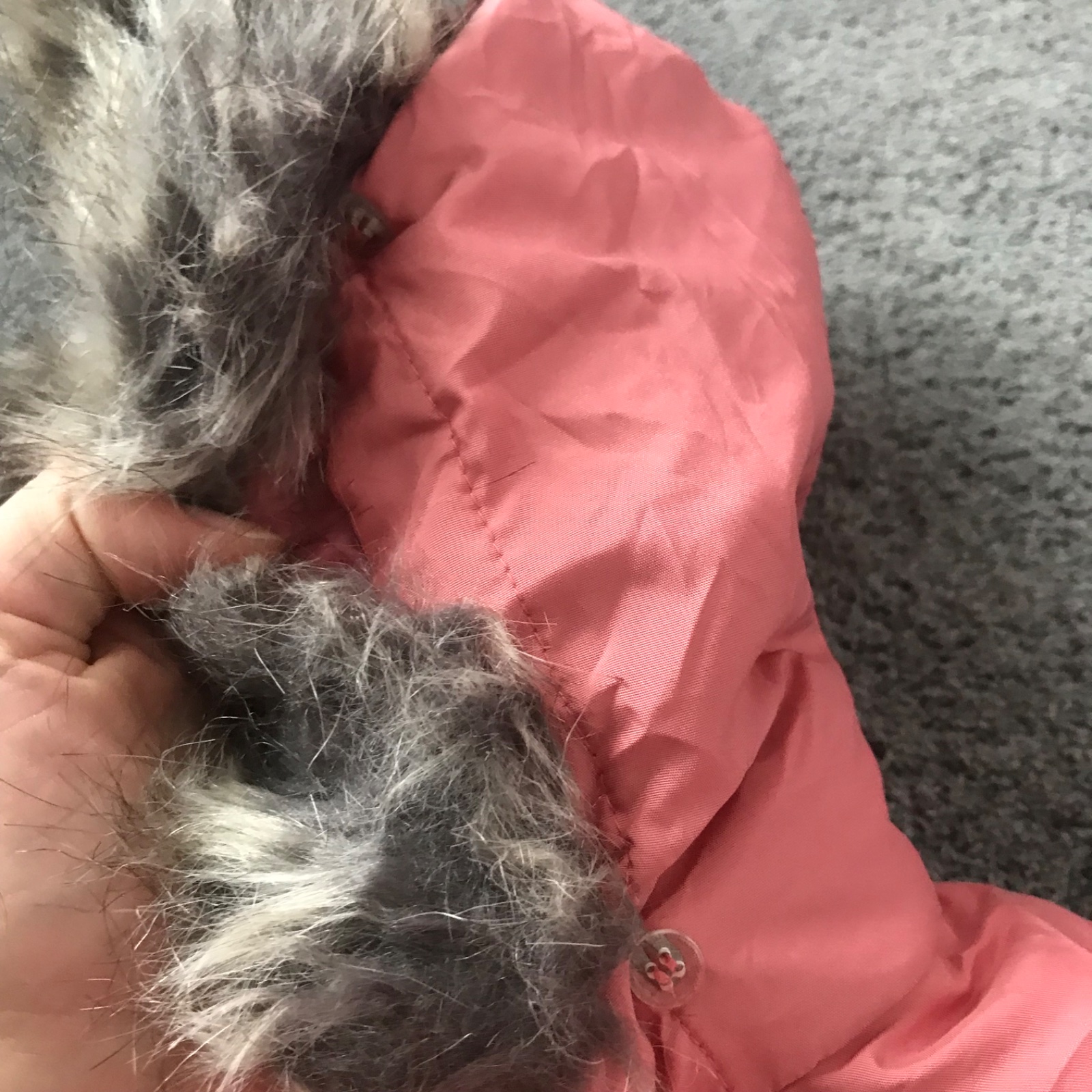 Nosená pár krát na striedačku s inými, takže ja zachovalá - v stave ako nová. Nenašla som žiadnu chybičku. Kožusinka na kapucni je odopínateľná, a je hebučká jemnučka.