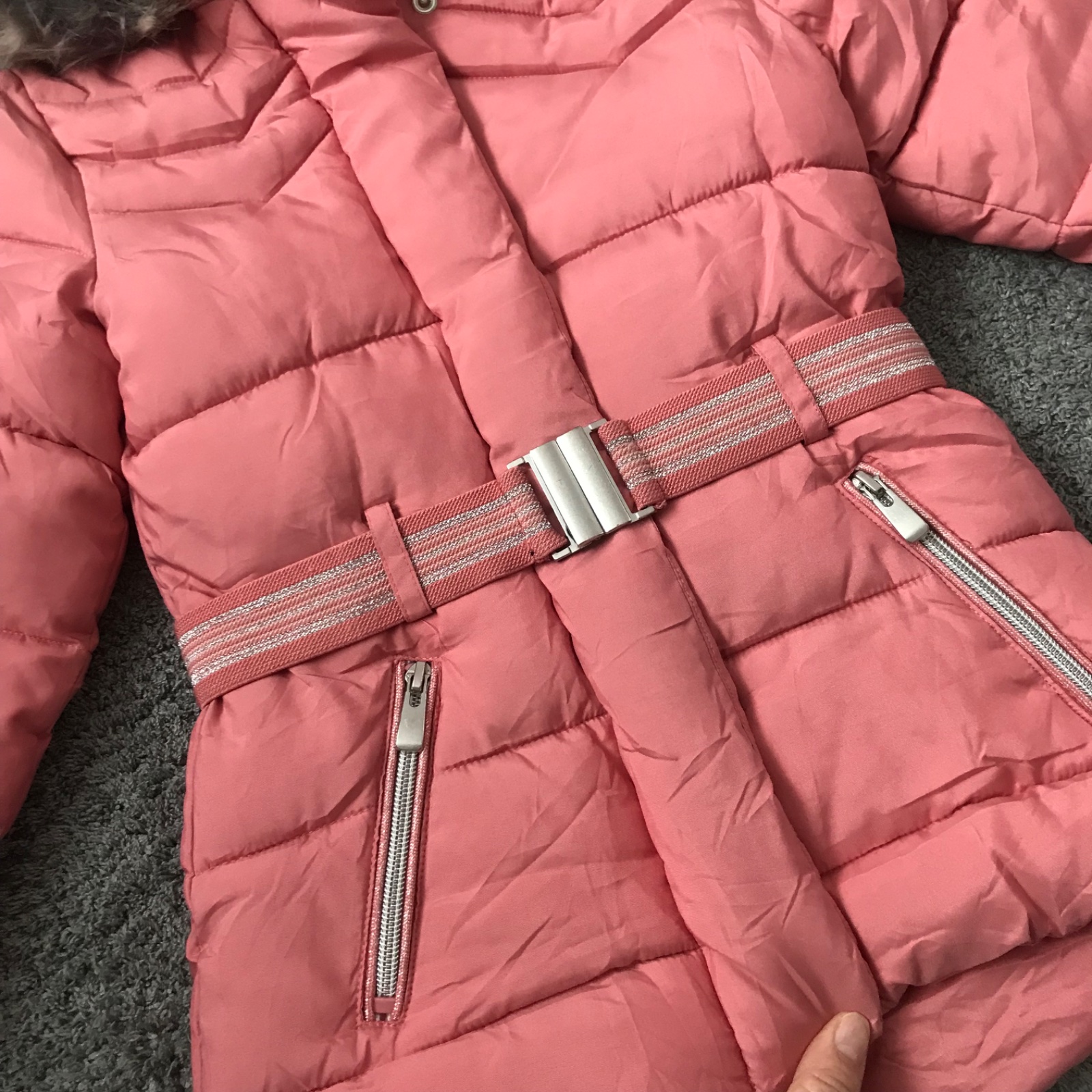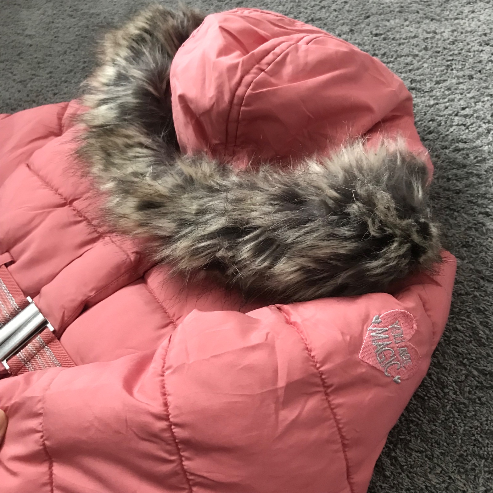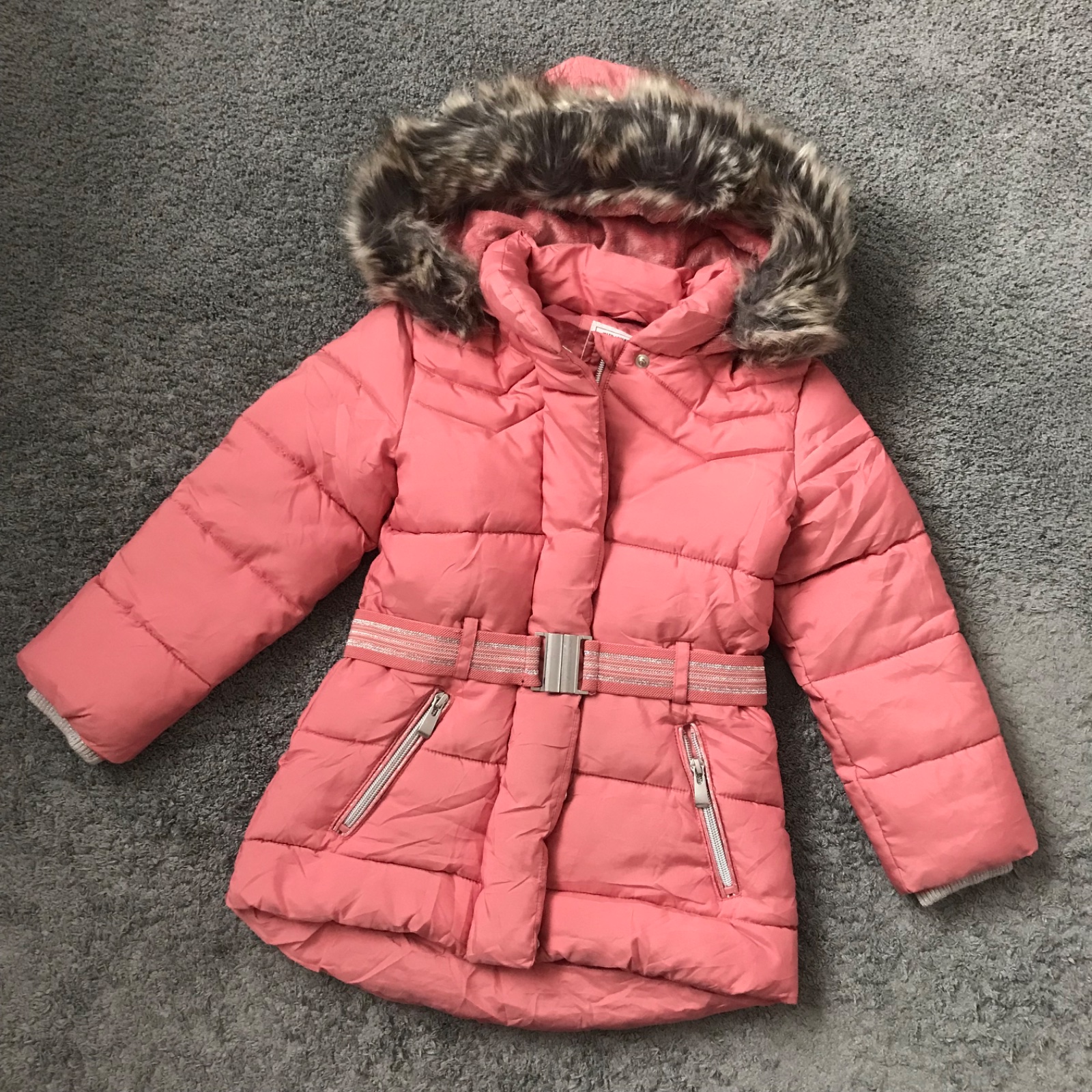 Nosená pár krát na striedačku s inými, takže ja zachovalá - v stave ako nová. Nenašla som žiadnu chybičku. Kožusinka na kapucni je odopínateľná, a je hebučká jemnučka.