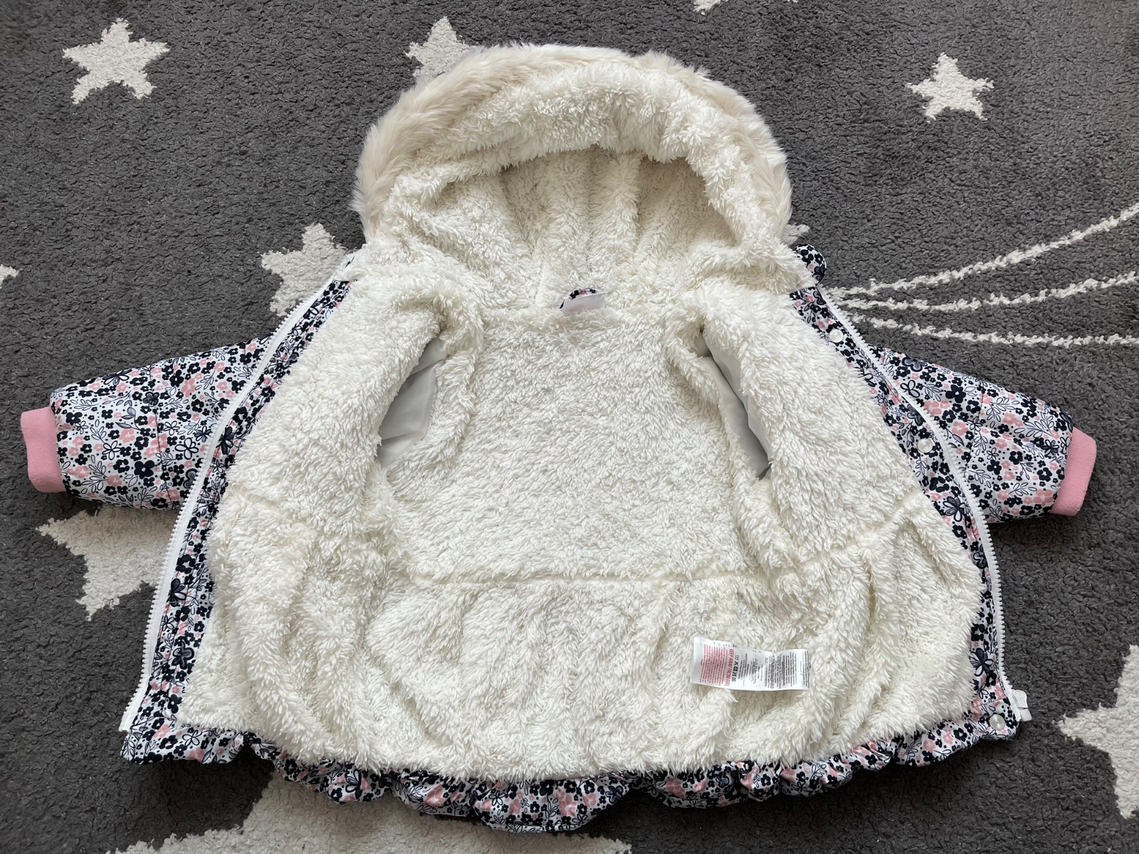 Krásna teplá bundička bez poškodení ako nová veľkosť 86 ale dcérka nosila aj ako 92 (cca2roky)