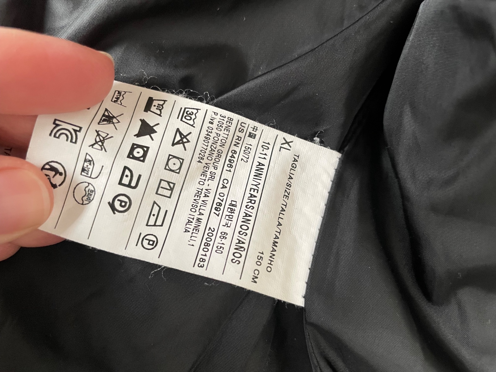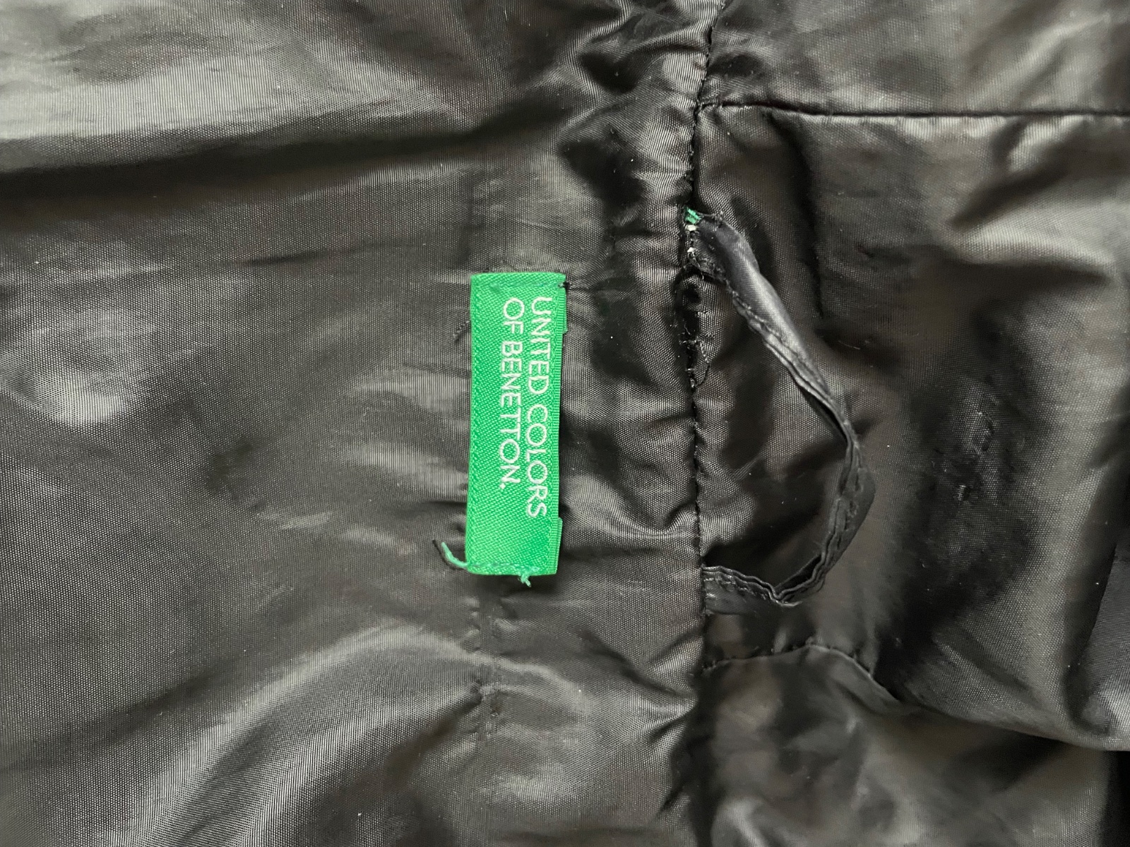 Teplý zimný prešívaný kabát v zaujímavom prevedení kombinácii dvoch materiálov, zn. Benetton, veľ detská XL, 140-146tka
