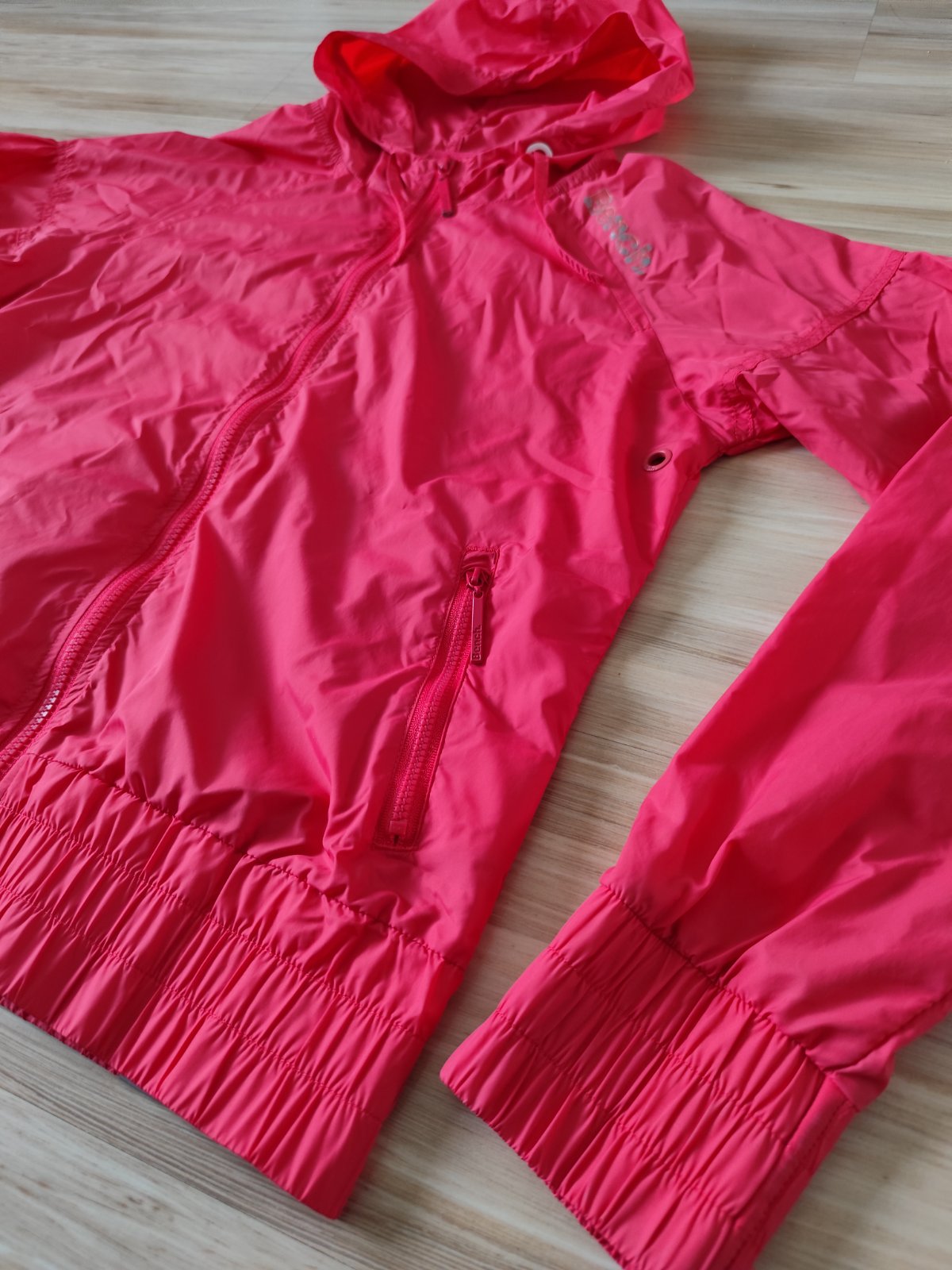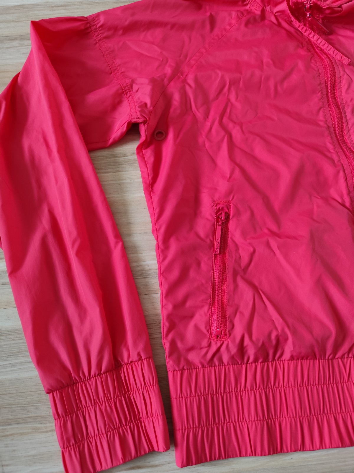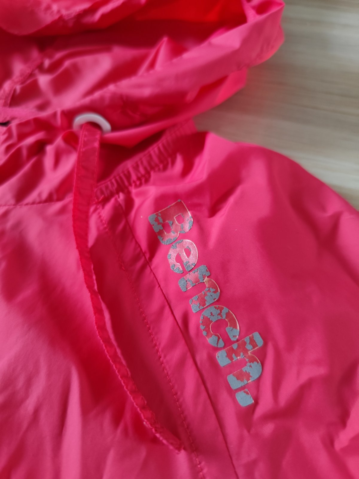 Tenučká, šušťaková, nepodšitá, nosená máličko, jediné poškodenie , že opadáva nápis Bench.