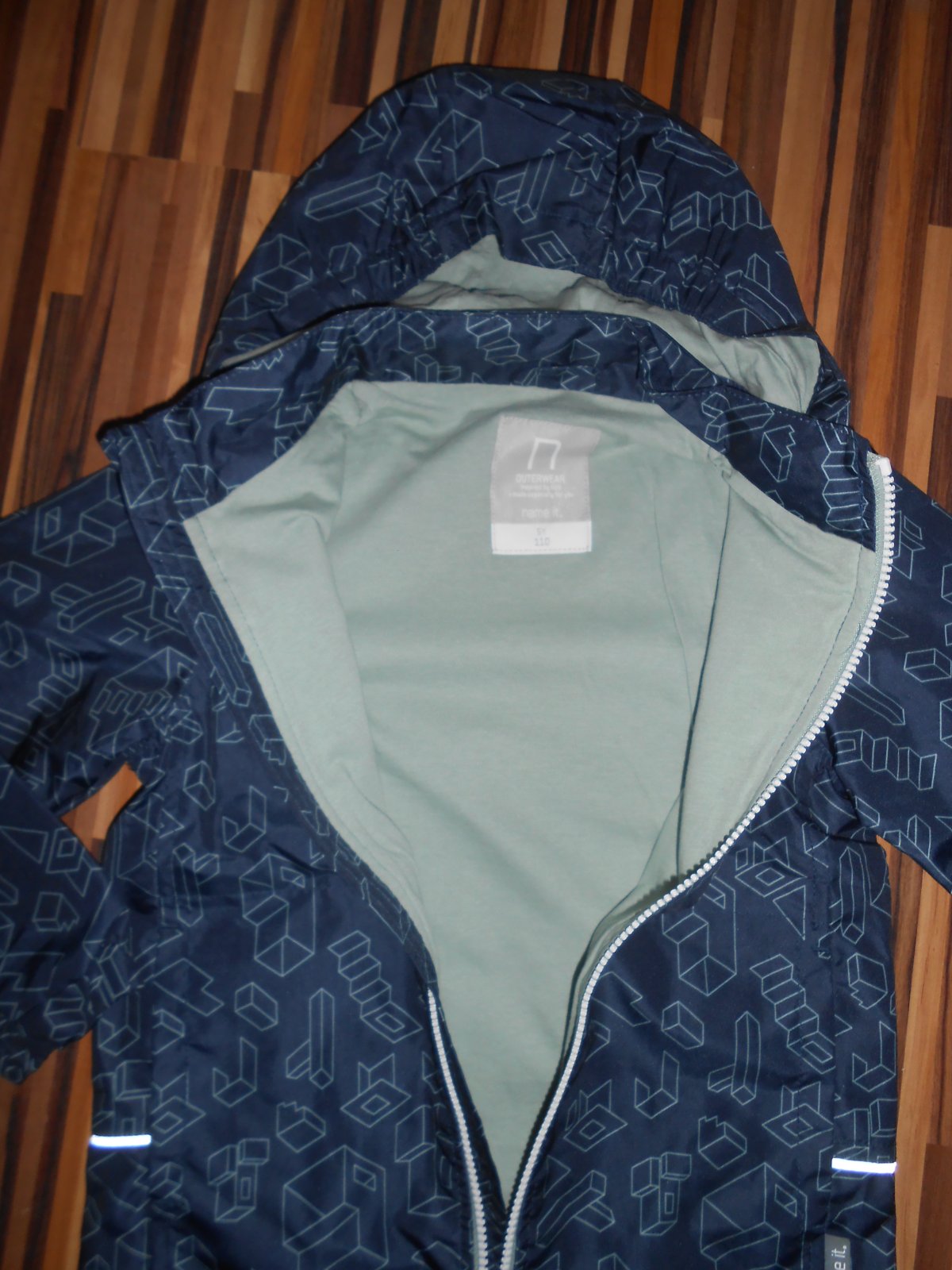 Bunda vo veľkosti 110, iba opratá, nenosená, vnútro je zateplené teplákovinou, mala by byť nepremokavá (ale to nemáme odskúšané), má reflexné prvky, kapucňa sa dá odopnúť je na cvoky, dĺžka rukávu 46 cm, od ramena 42cm, šírka v podpazuší 38cm x 2, dĺžka 49cm. Pôvodná cena 30€. Cena + poštovné, na dobierku neposielam, platba vopred na účet. (MK)