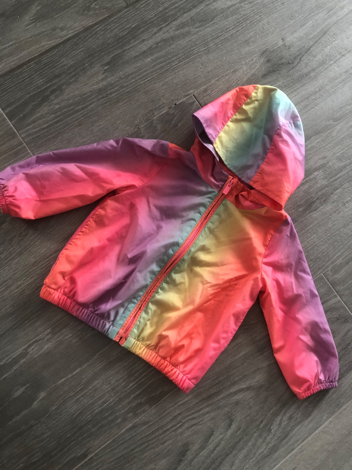 Prechodná vetrovka nosená vo veľmi dobrom stave. Je kratšia, veľmi pekne vynikne pri sukničke, šatkách alebo rifliach. Veľkost 2 roky, ale dá sa nosiť aj skôr.