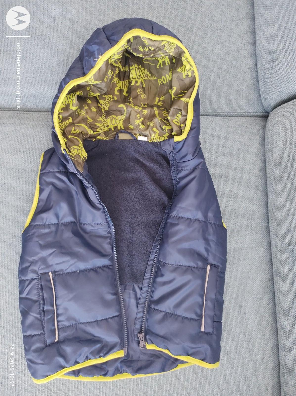 Predam velmi peknu vestu, velkost 116, vek 5-8 rokov. Zapinanie na zispa a plus cvoky. Kapucnu prišitá