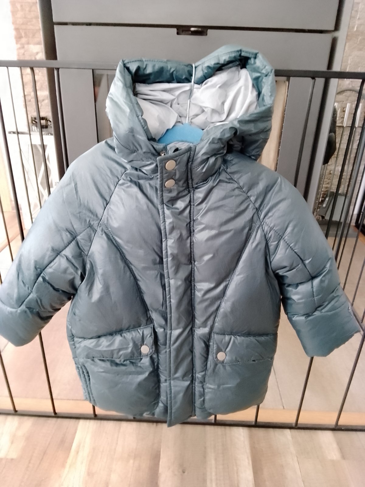Predám krásnu antracitovu bundu,nosena na striedačku.Poskodenia nemá žiadne,len odtrhnuté uško na zavesenie , dá sa zašiť.