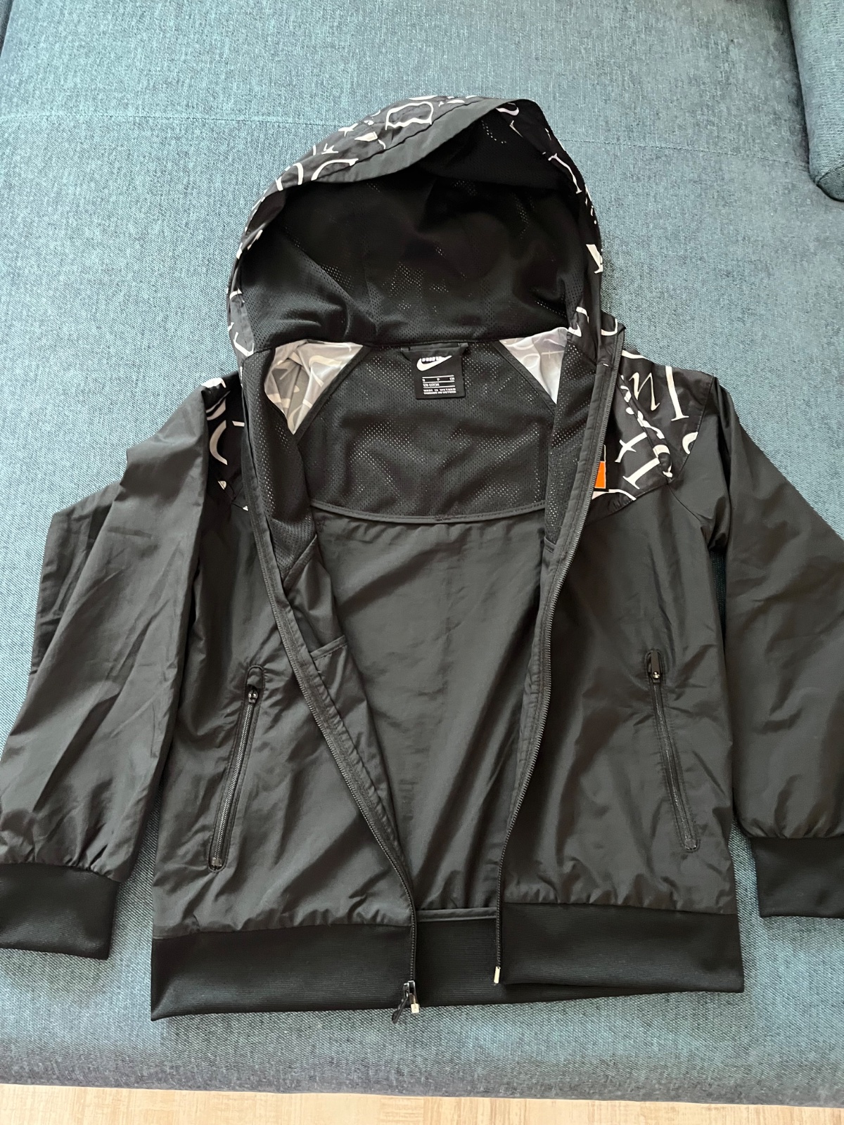 Čierna buna Nike nosená minimálne. Jediná závada je na zipse na vrecku chýba koncovka - viď foto. Zips sa dá bez problémov zapnúť, odopnúť