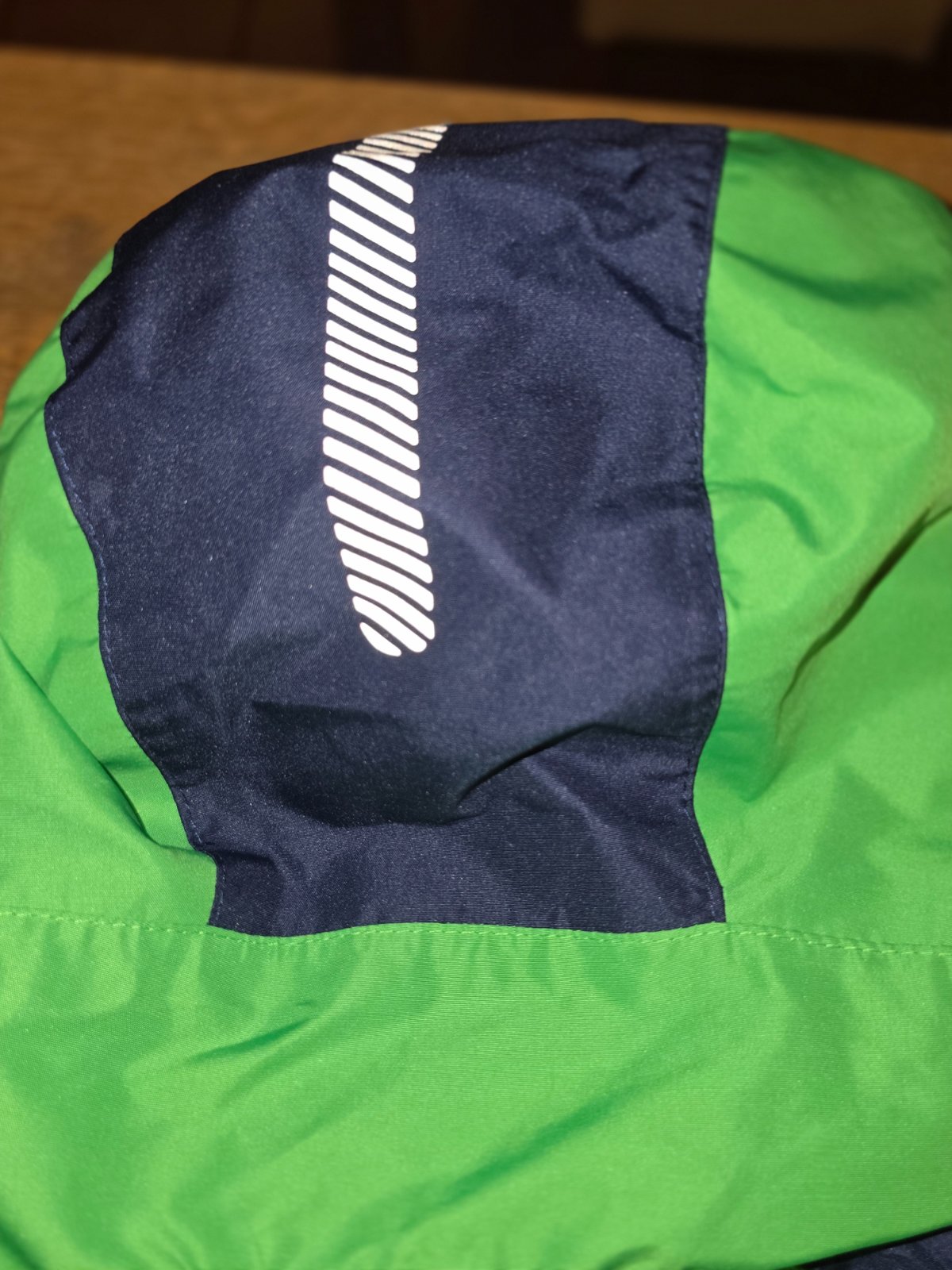 Vyniká výrazným zeleno-modrým dizajnom s kontrastnými oranžovými (plochými) zipsami, ktoré nielen pekne vyzerajú, ale aj uľahčujú zapínanie a sú komfortné na dotyk. Hlavný zips je vybavený ochranou brady, takže nehrozí nepríjemné štípanie alebo poškriabanie pokožky pod bradou, čo je pre deti veľká výhoda a znakom kvality.