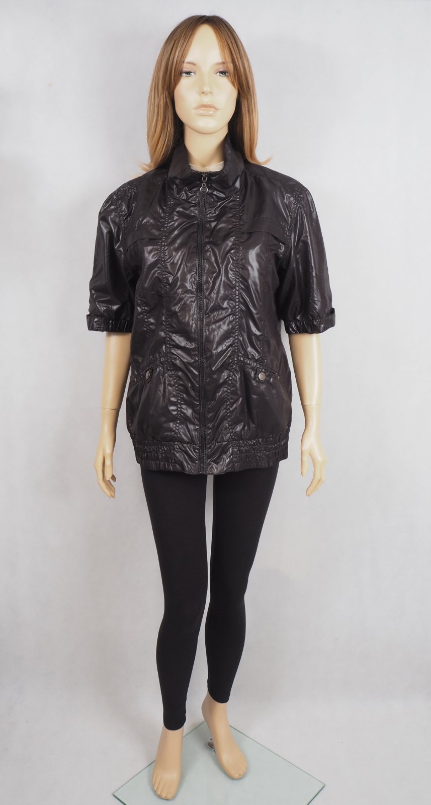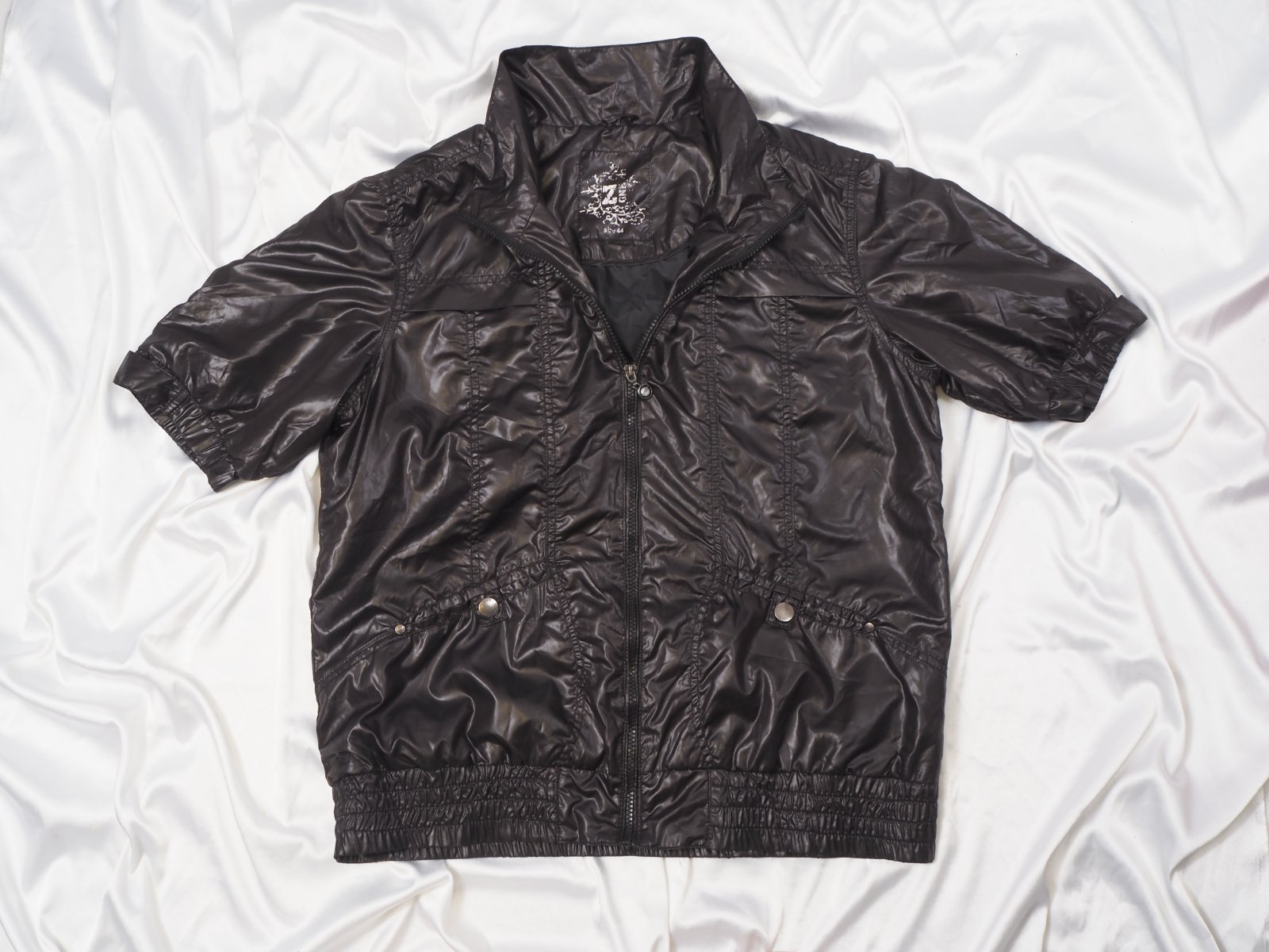 Kvalitná čierna bunda s krátkym rukávom, zapínanie na zips, materiál 100% polyester, super stav.