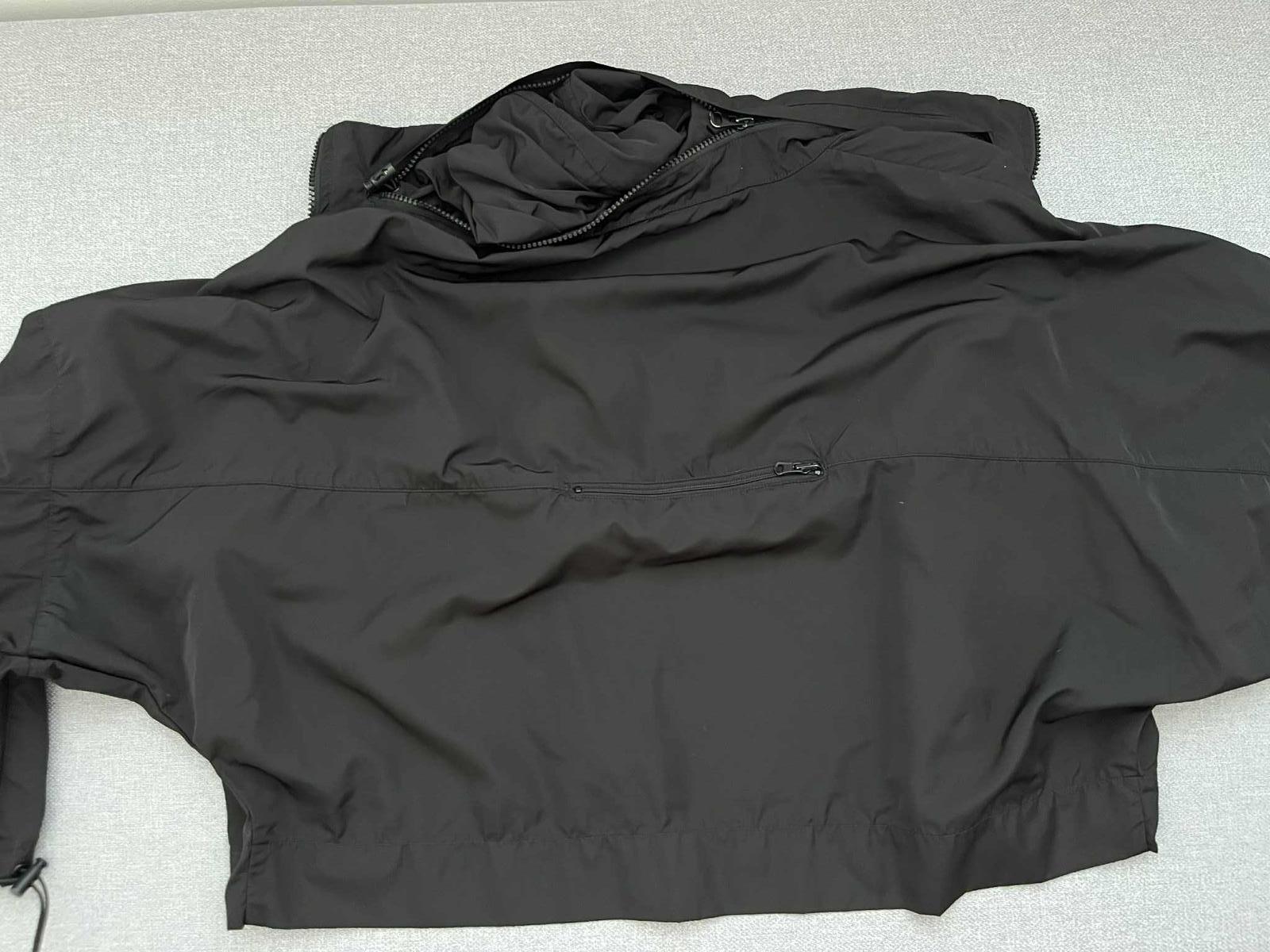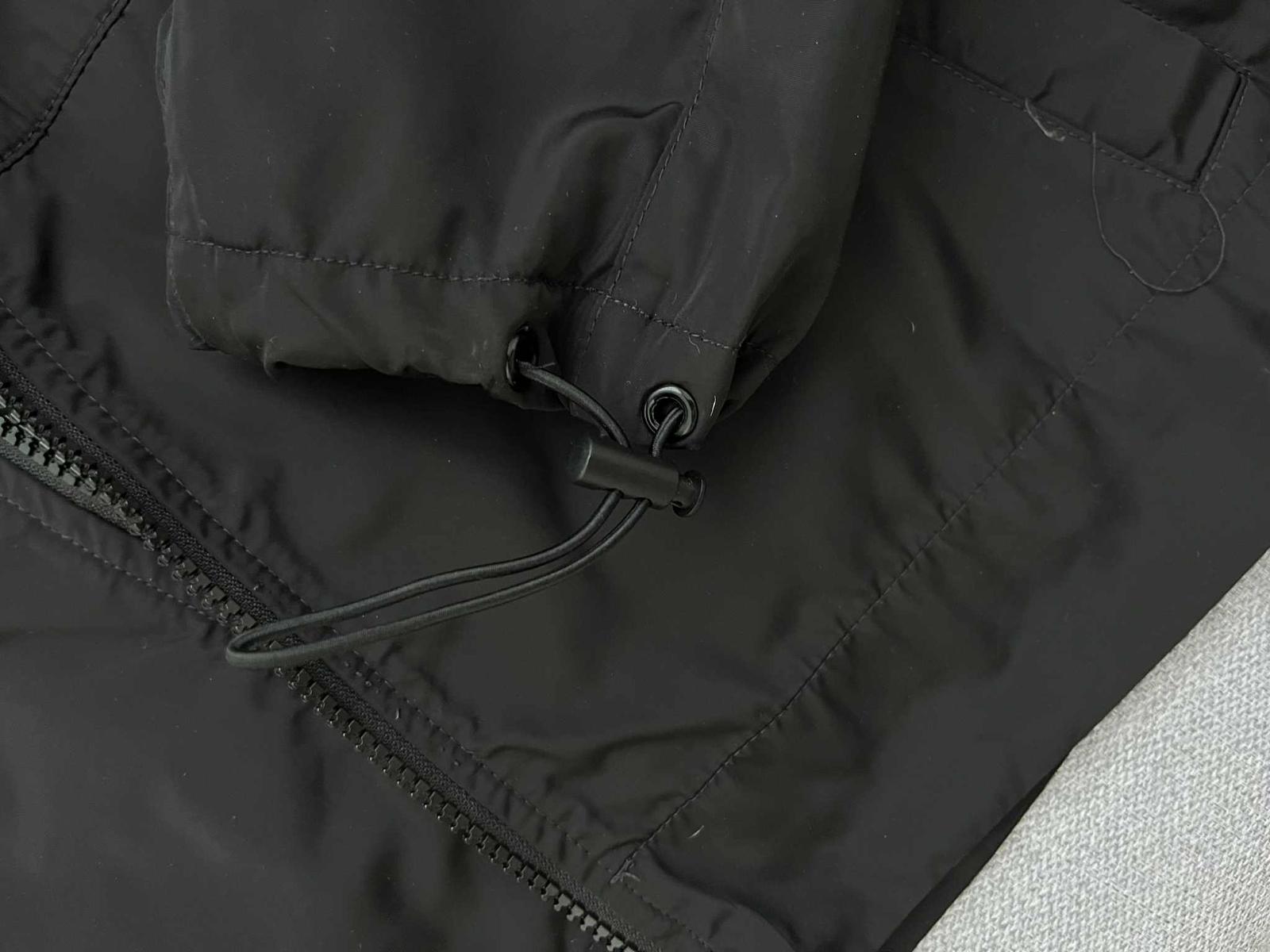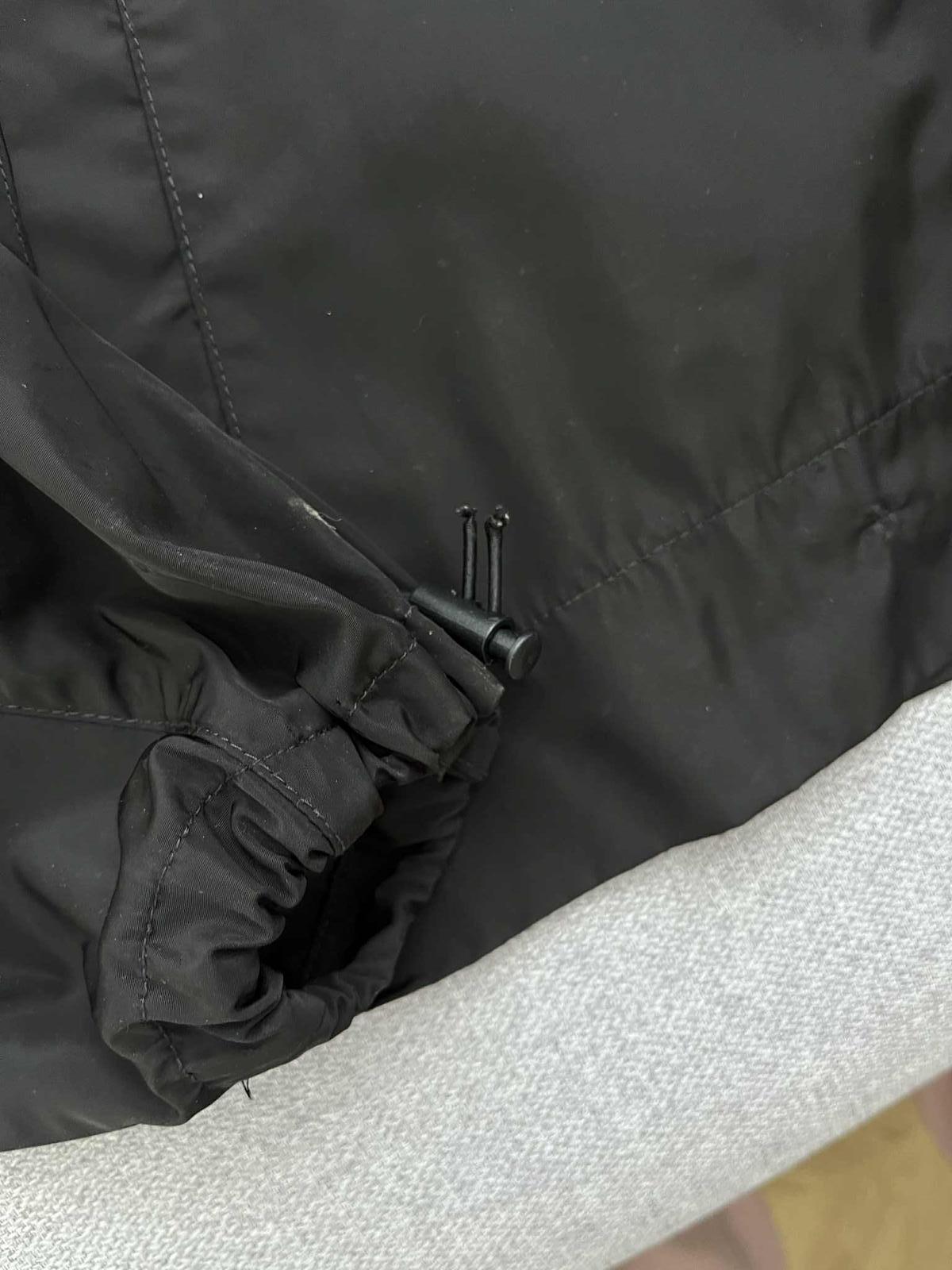 Krasna, trendy lahka sportova bunda. Taky akoby oversize strih vdaka rukavom, ale je do pasa. Na rukavoch je stahovacia gumicka, na pravom rukave pretrhnuta, no da sa jednoducho vymenit. Kapucna sa da zrolovat do goliera a cela bunda sa da zrolovat do vrecka na chrbte a z bundy vznikne maly ruksacik :) Pri noseni sa da zadne vrecko vyuzit. Bunda ma aj normalne vrecka.