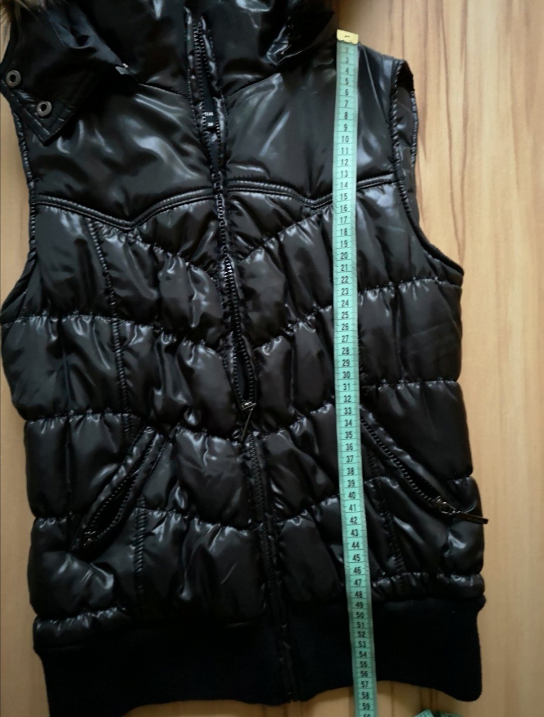 Krásna vesta Tally Weijl (čierna lesklá), veľmi dobrý stav, bez poškodení, patent má jemné žmolky. Zapnúť sa dá až ku krku, neprefúka.