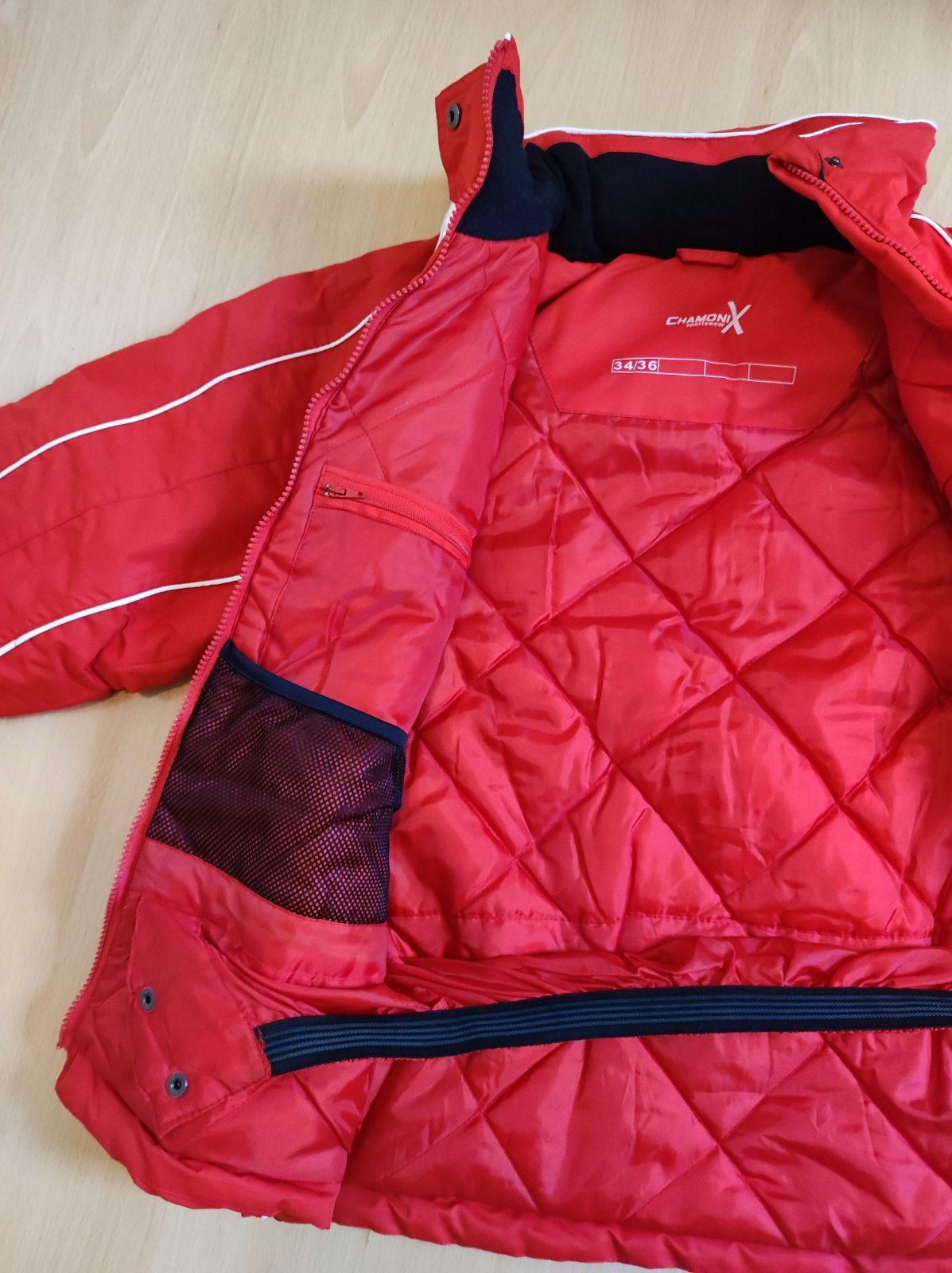Vhodna aj na lyzovanie, dve vnutorne vrecka, tri vonkajsie, pod pazuchami zipsy, vetraci otvor, vnutri gumicka proti vniknutiu snehu, skryta kapucna v golieri...premeriam, velkost uvedena 34/36.