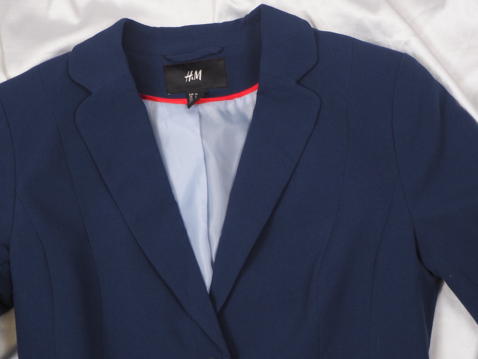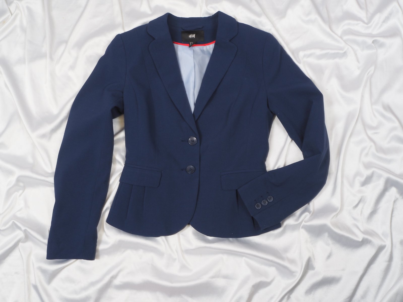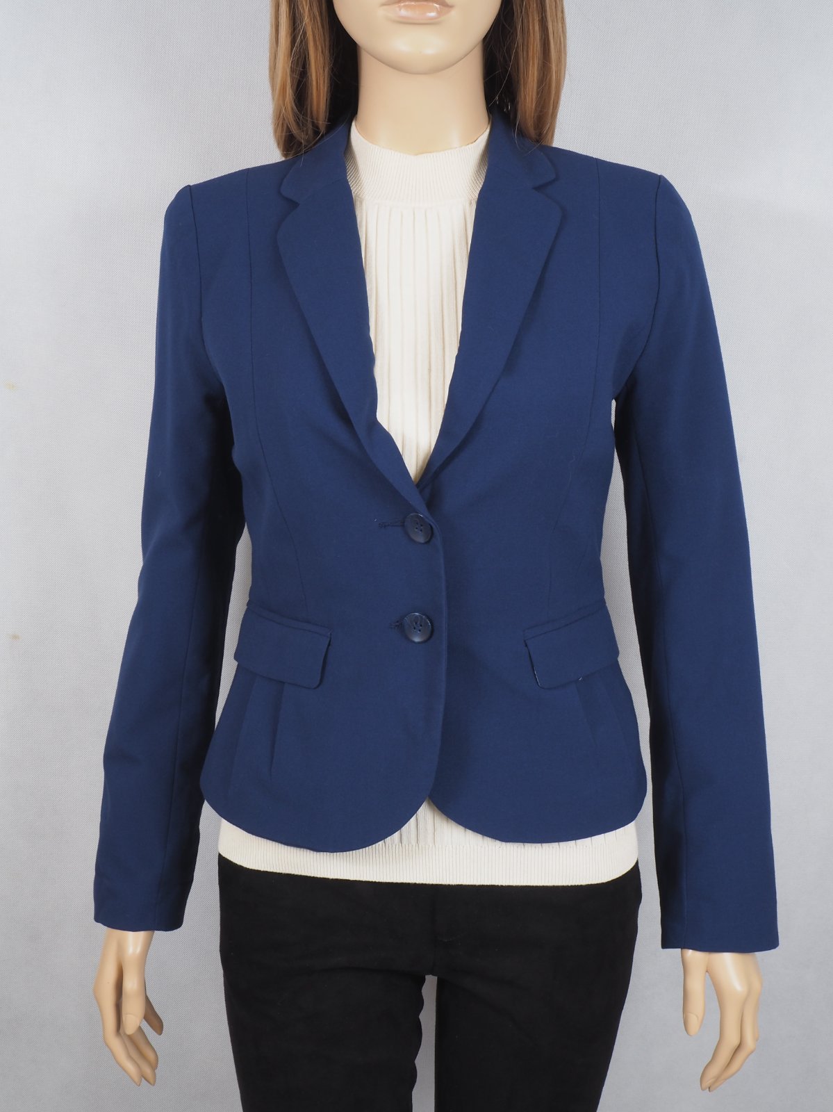 Kvalitné tmavomodré sako, zapínanie na gombíky, podšité, materiál 66% polyester, 30% viskóza, 4% elastan, super stav.