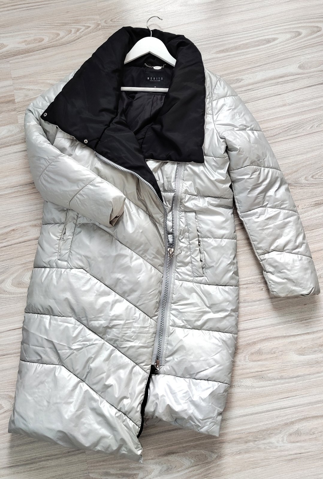 Zimná bunda vo veľkosti S, nesadla mi. Má vadu materiálu, je akoby sem tam do hneda, vidieť to veľmi slabo, oprala som ju, no nezišlo to. Odporúčam na také nosenie domáce, respektíve asi nie moc do mesta, ale možno to niekomu nebude vôbec prekážať. Cena 18 eur.