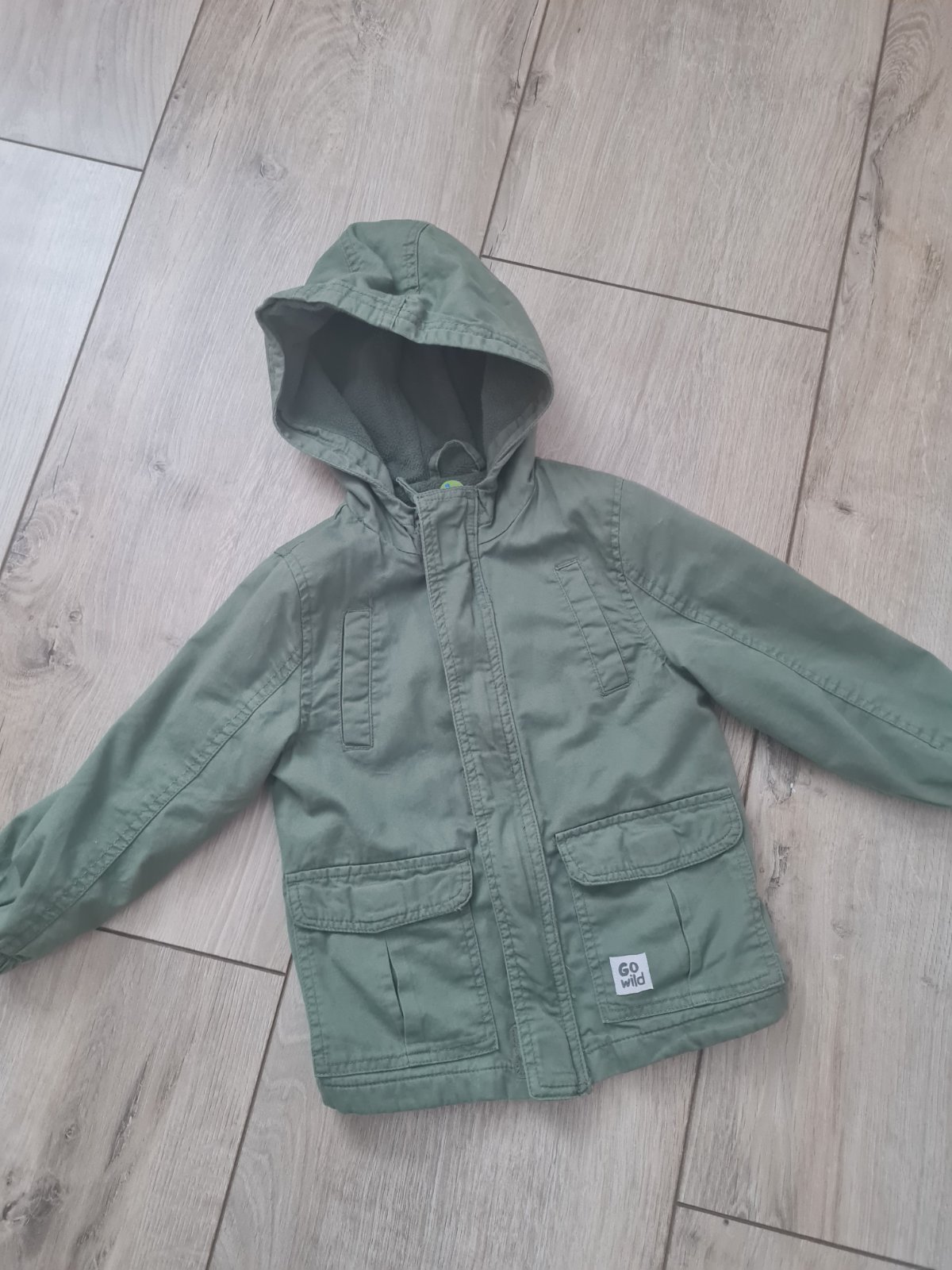 Moderná chlapčenská bunda, vel.98. Troška zateplená. Na prednej časti malý kaz, kde je farba vyblednutá (na foto), pri nosení nejde vidieť.