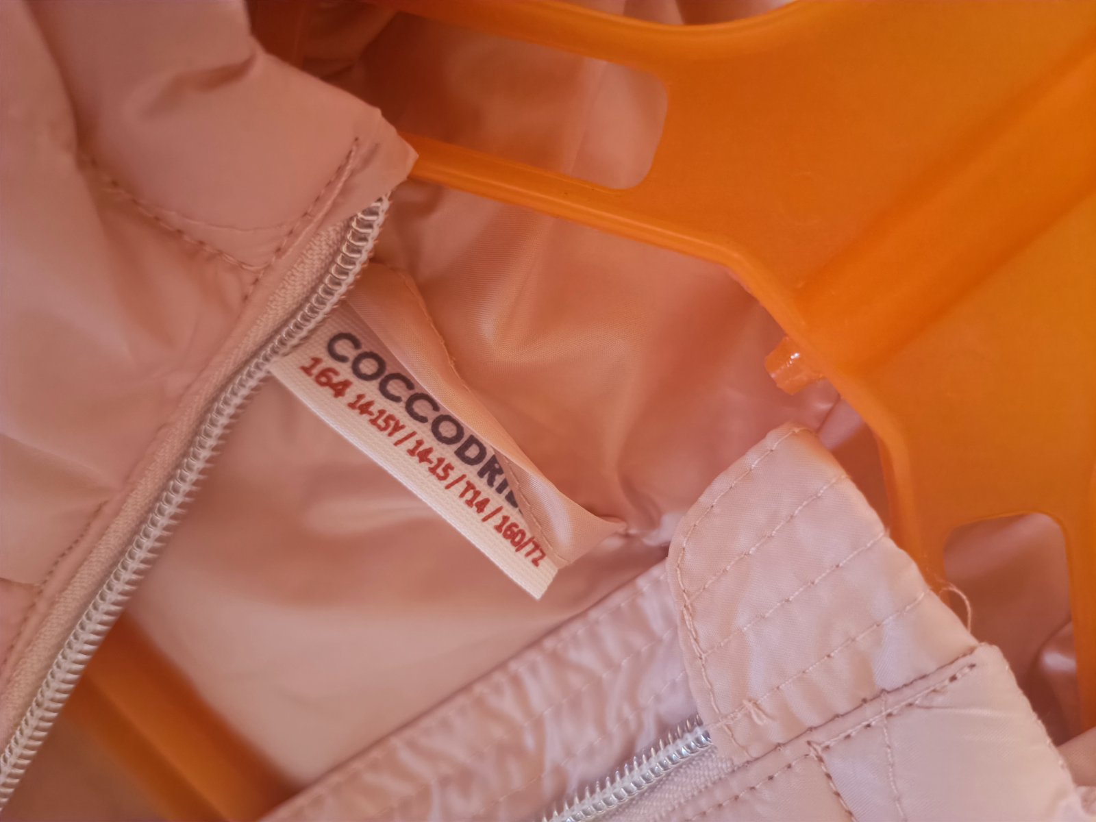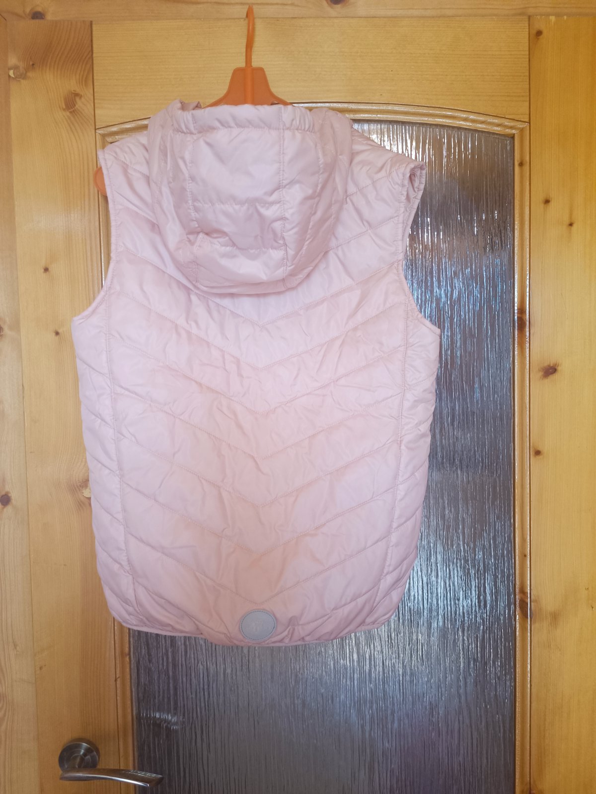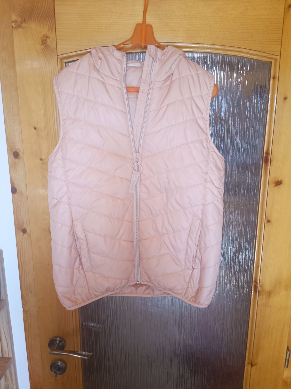 Pekná vesta jemno ružovej farby , velkosť 164. Vesta má 2 vrecká a kapucka je odnímatelná. Výborný stav.
