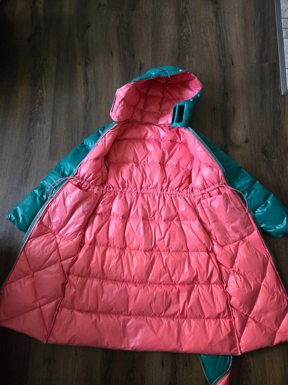 Obojstranna vetrovka, talianska vyroba, raz oblecena, neuvedena velkost treba sa orientovat podla rozmerov, vetrovka ma obojstranny zips a z predu sa da rozsirit vsadenim 12cm pasu vid foto.