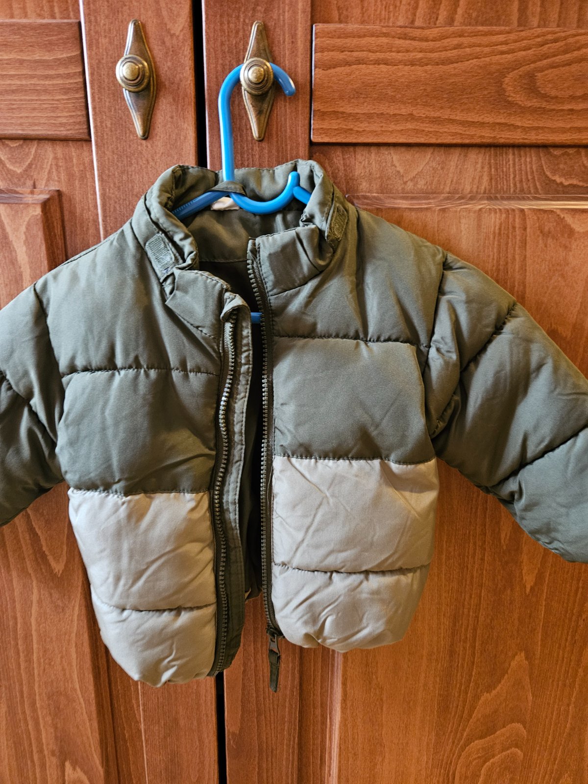 Bez poskodení. Pise velkost 12-18 mesiacov, ale sedi skor na velkosť 80. Je to teplejsia prechodna bundicka. Do mrazov je podla mna uz tenka. Rozmery: dlžka 32 cm Širka pod pazuchami 32 cm Dlžka ru...