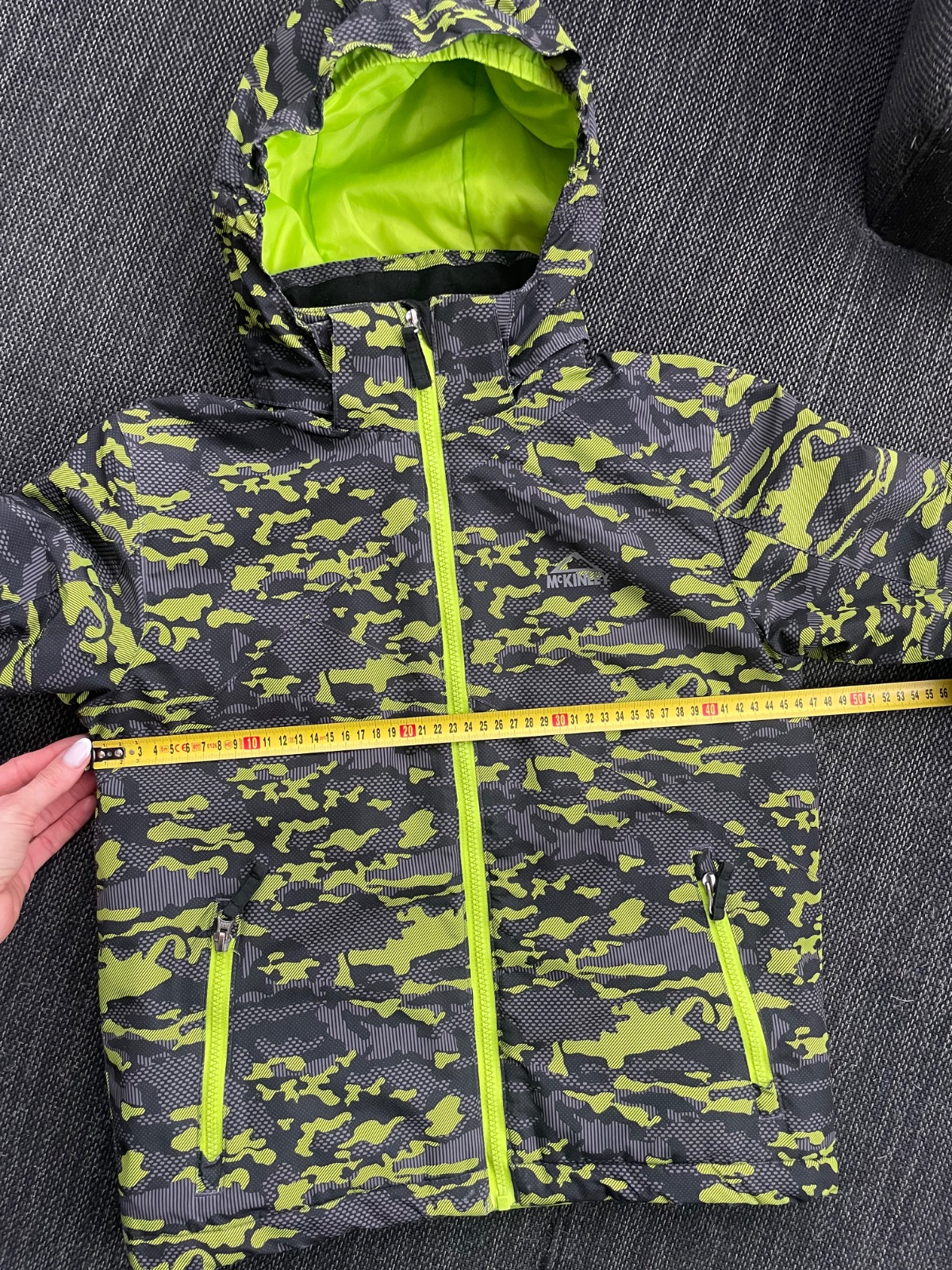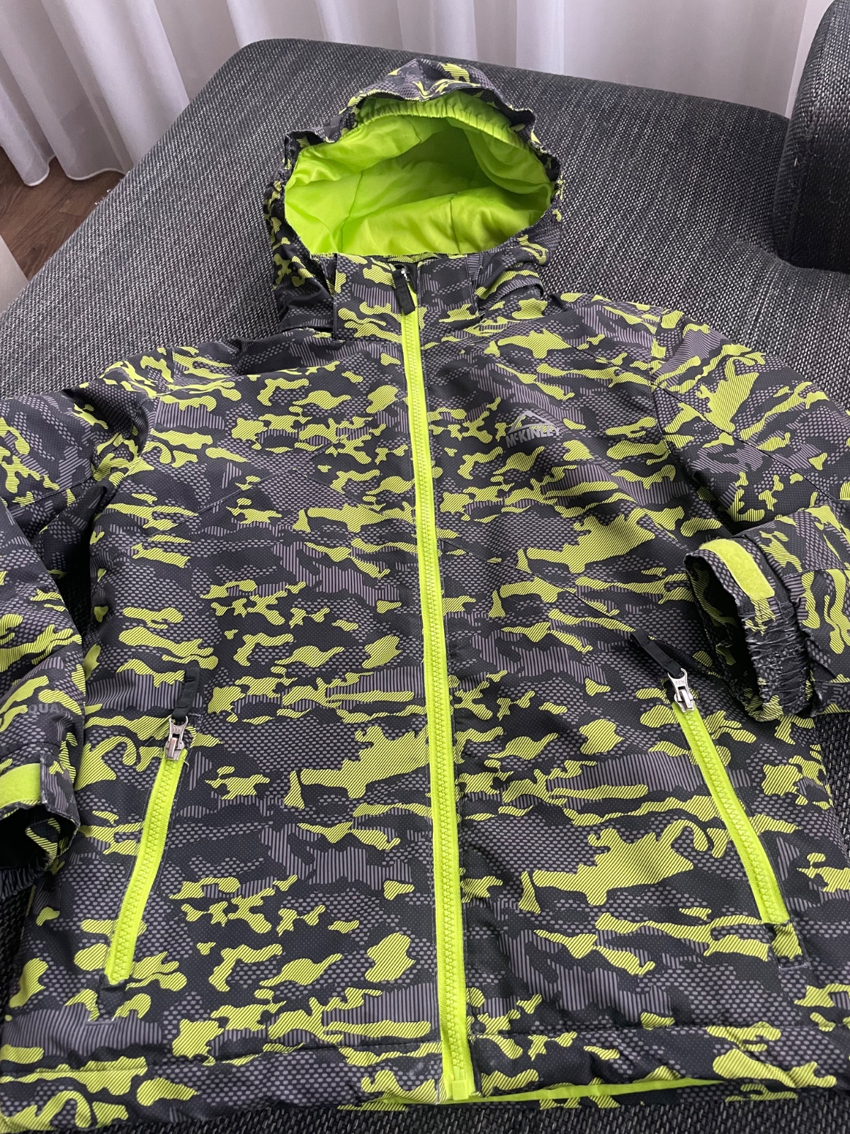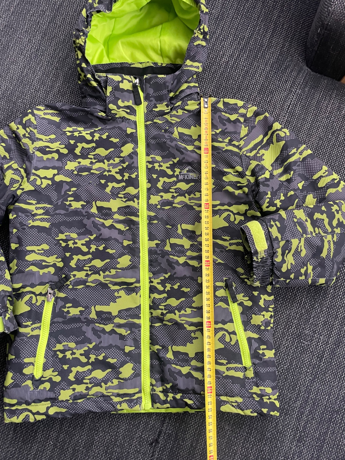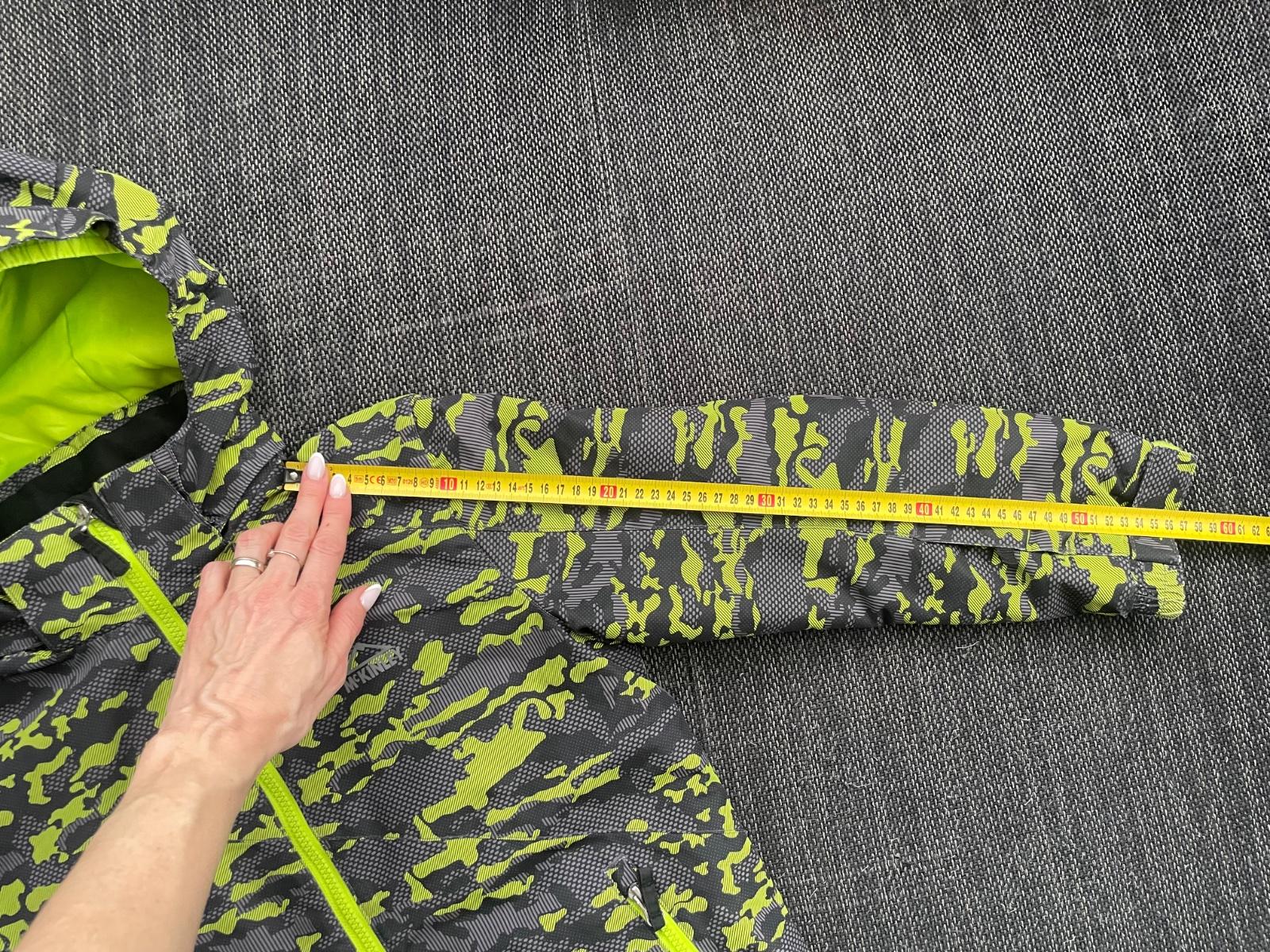 Pekná lyžiarska bunda s výraznou zelenou farbou. V dobrom stave, len menšie znaky nosenia na okrajoch rukávov- viď foto.