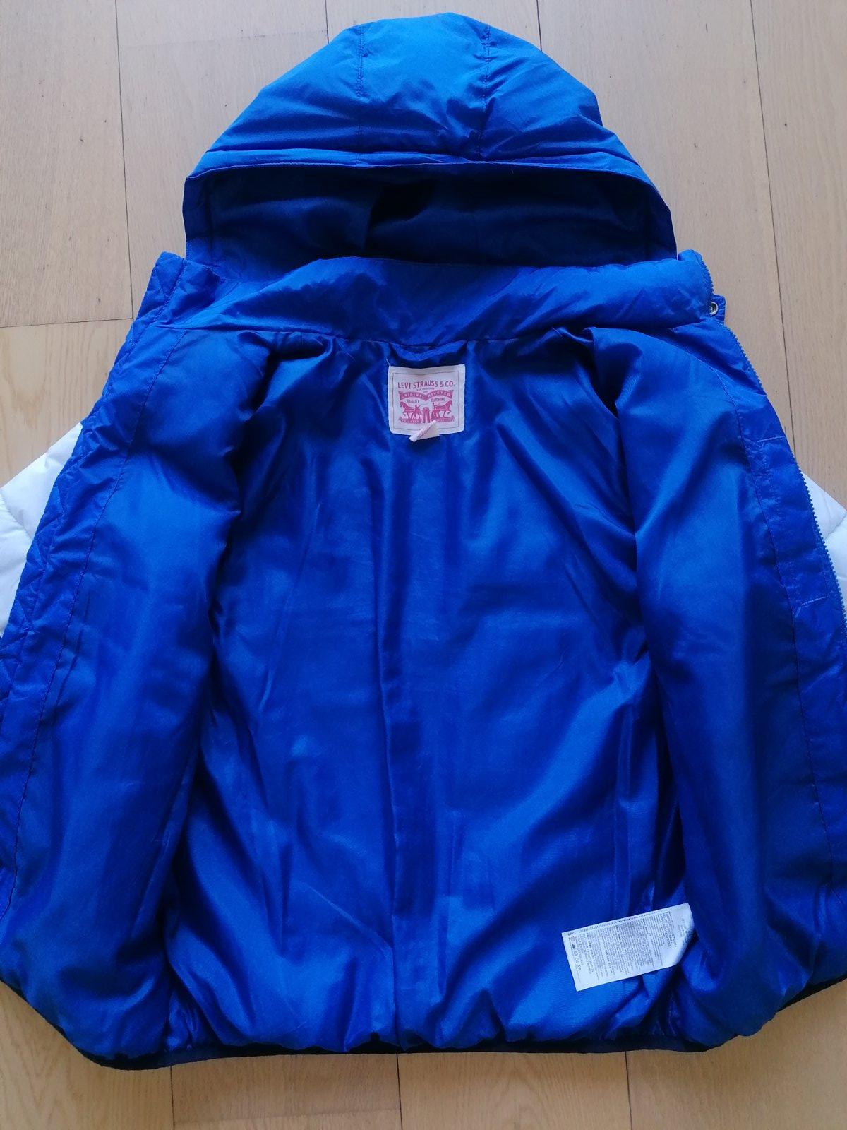 chlapčenská bunda Levis ,veľkosť 152/158,nie je veľmi hrubá,na teplejšiu zimu,chladnejšiu jeseň/jar,1x oblečená,top stav,ako nová,cena 30,0€ + poštovné Rozmery:Dlžka cez stred chrbta vzadu 95cm, ru...