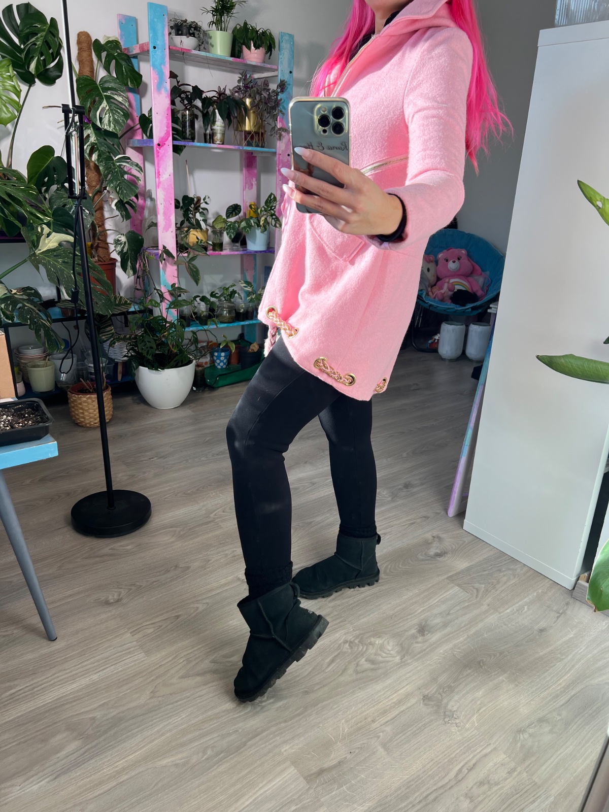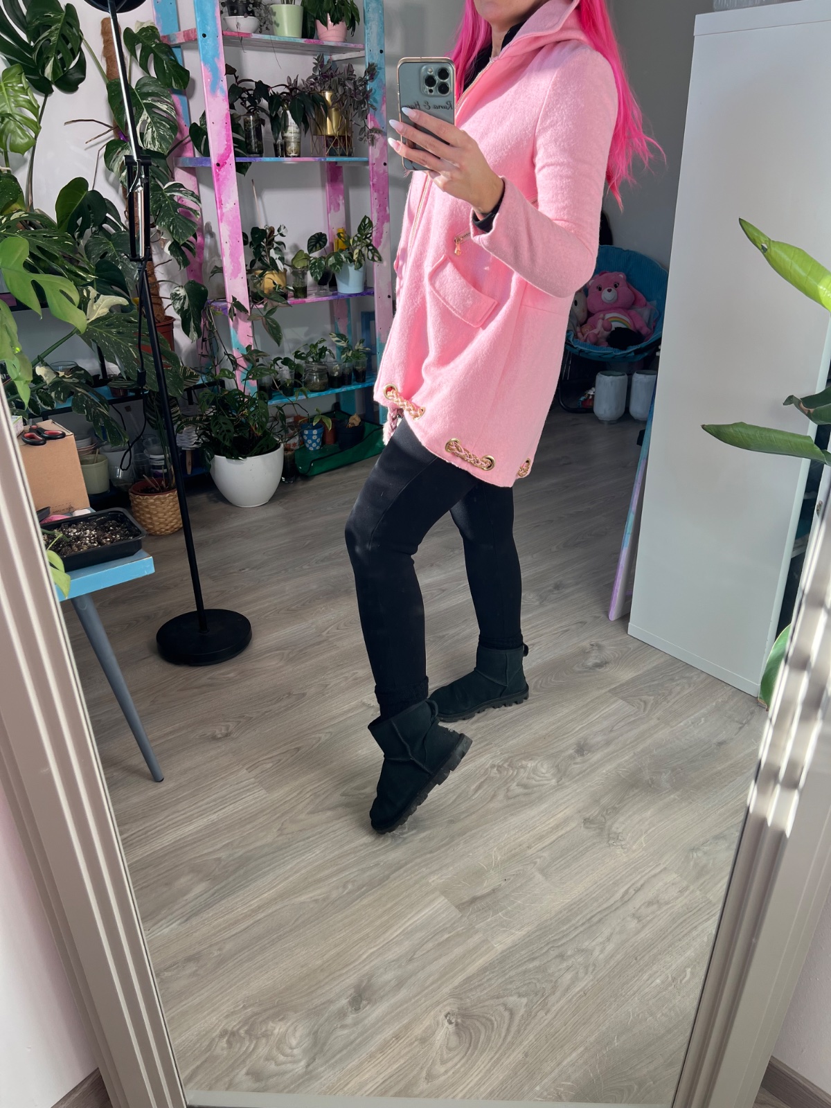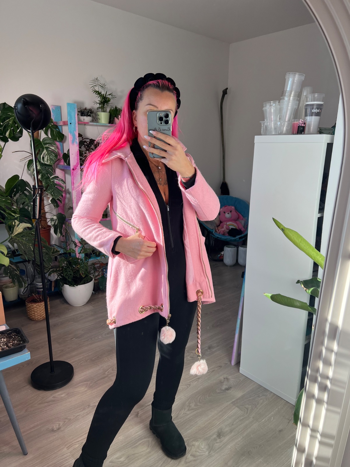 Dlhy bledo ruzovy damsky kabat na gombik. Sedi na XS.