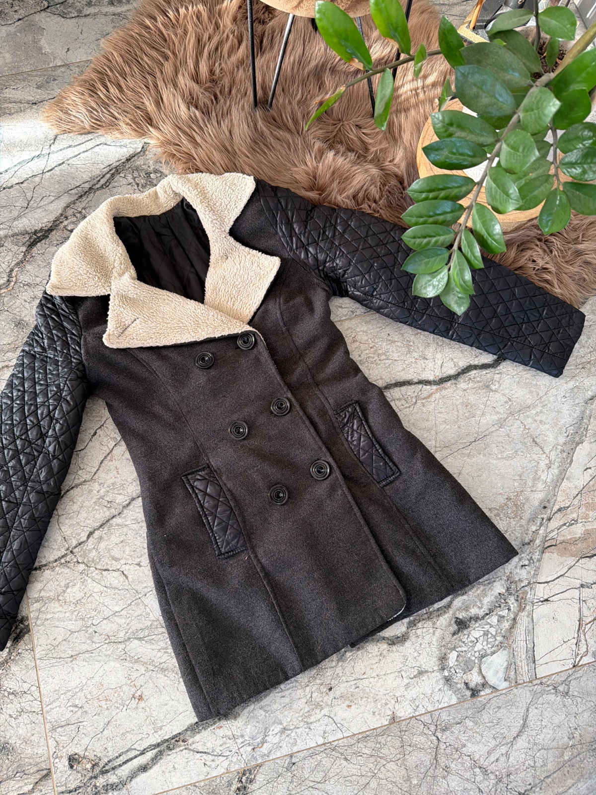 Predam cierno-sedy kabatik,malo noseny,celkova dlzka 77 cm,dĺžka rukáva 60 cm,šírka cez prsia 47 cm,cena + postovne