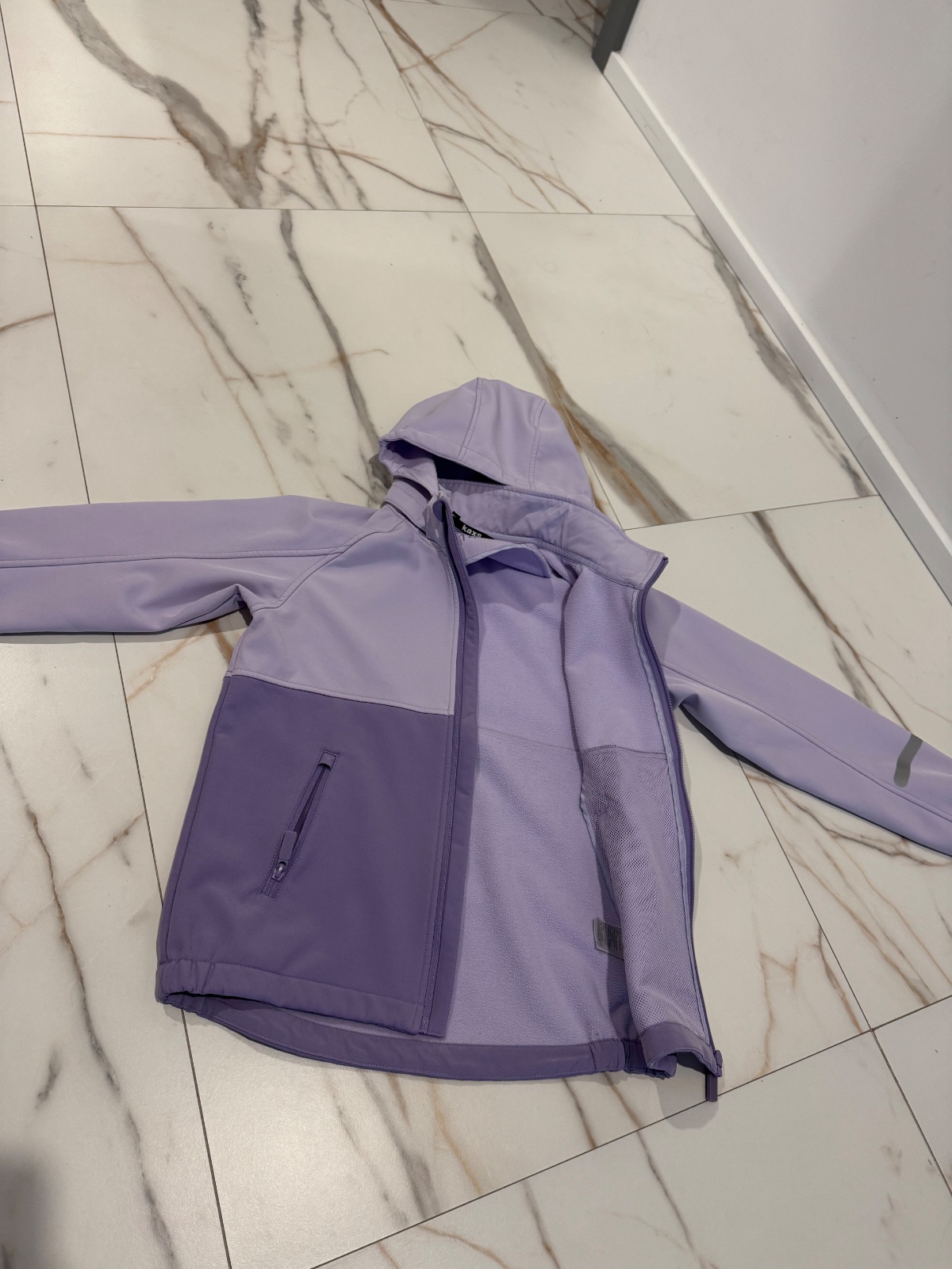 prechodná vetrovka - pár krát oblečená v bezchybnom stave v. 140/146 Rozmery: celková dĺžka 55 cm, šírka pod pažami 2 x 44 cm, rukáv od krku 65 cm. Je mierne zateplená flisom.
