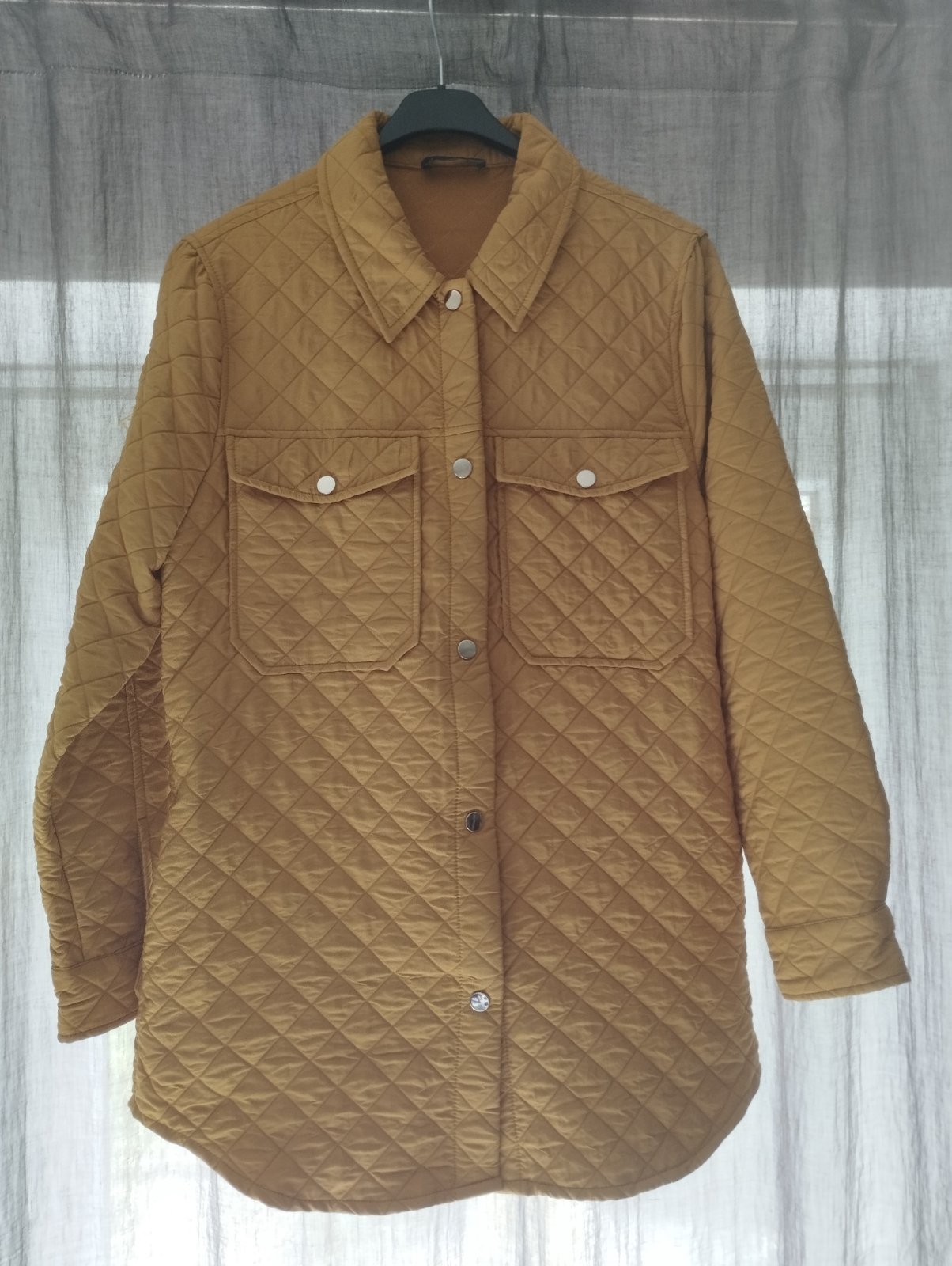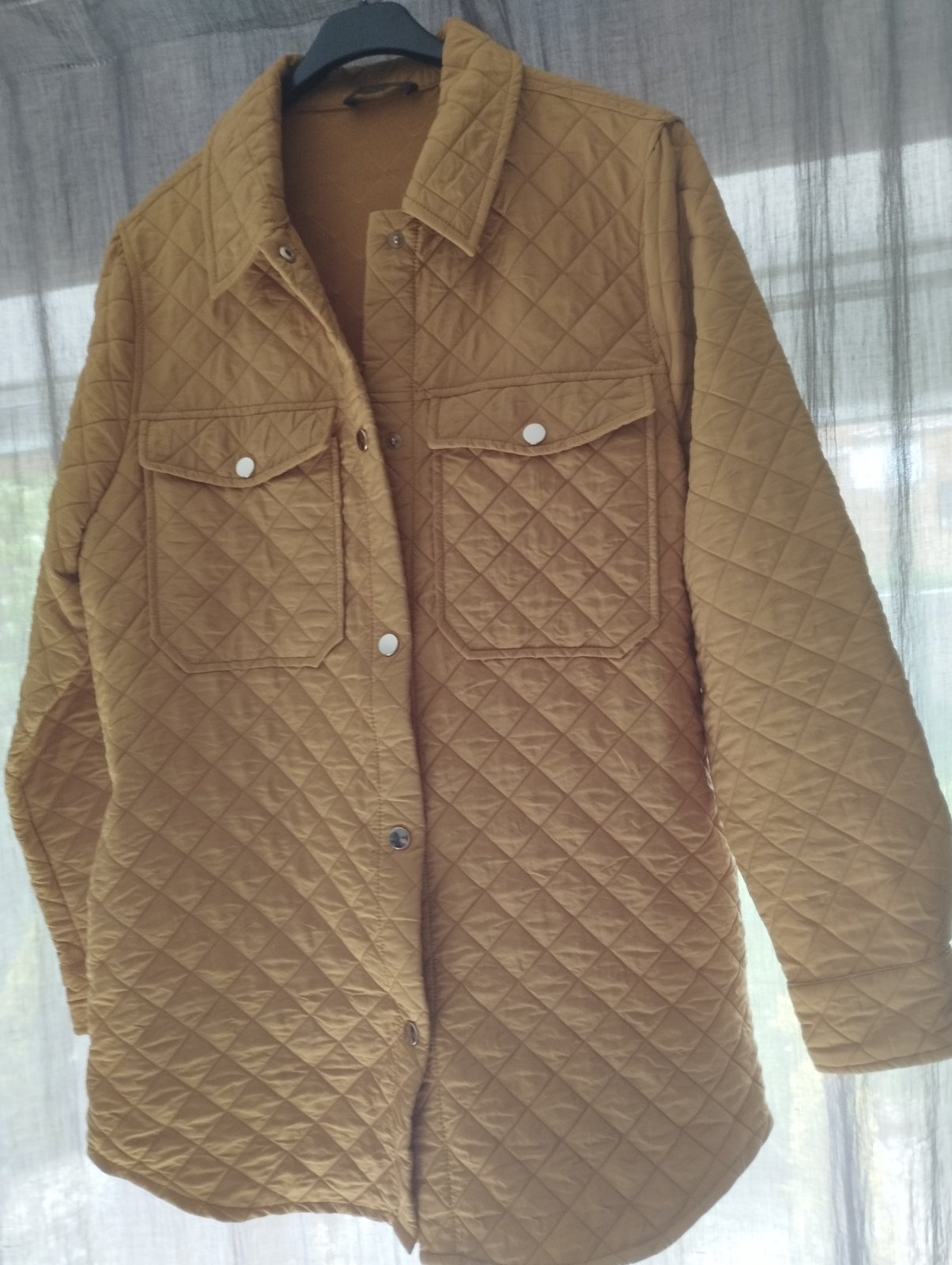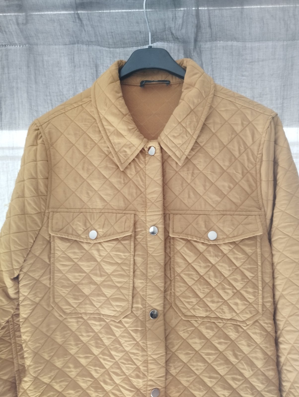predám dámsku prechodnú bundičku v dobrom nosenom stave, píšu veľkosť 40, značka Janina, 100% polyester, farba horčicová, zapínanie na zips, bez goliera, dve predné vrecká na zips, rukávy sa zapína...